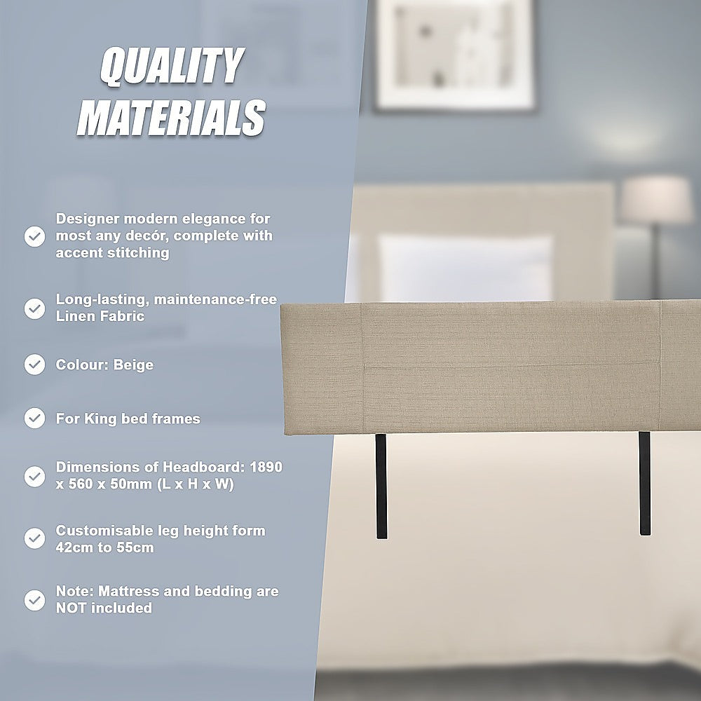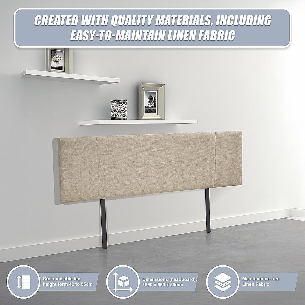Linen Fabric King Bed Headboard Bedhead - Beige