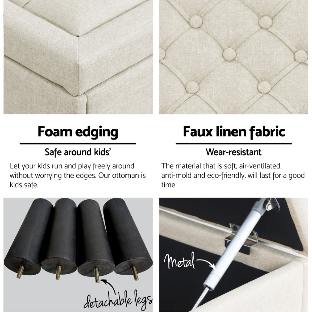 Artiss Storage Ottoman Blanket Box 96cm Linen Taupe