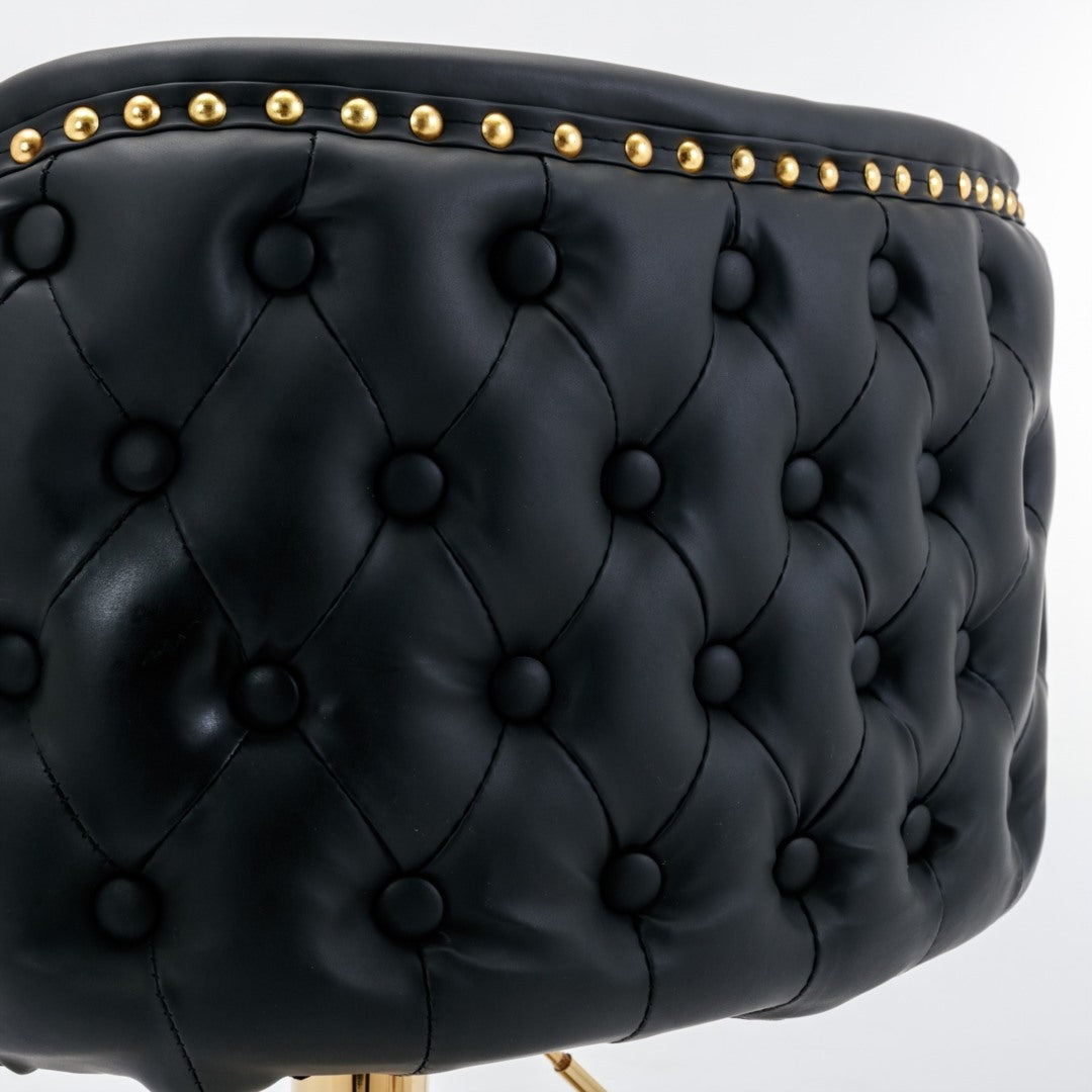 2x Faux Leather Golden Base Swivel Bar Stools- Black