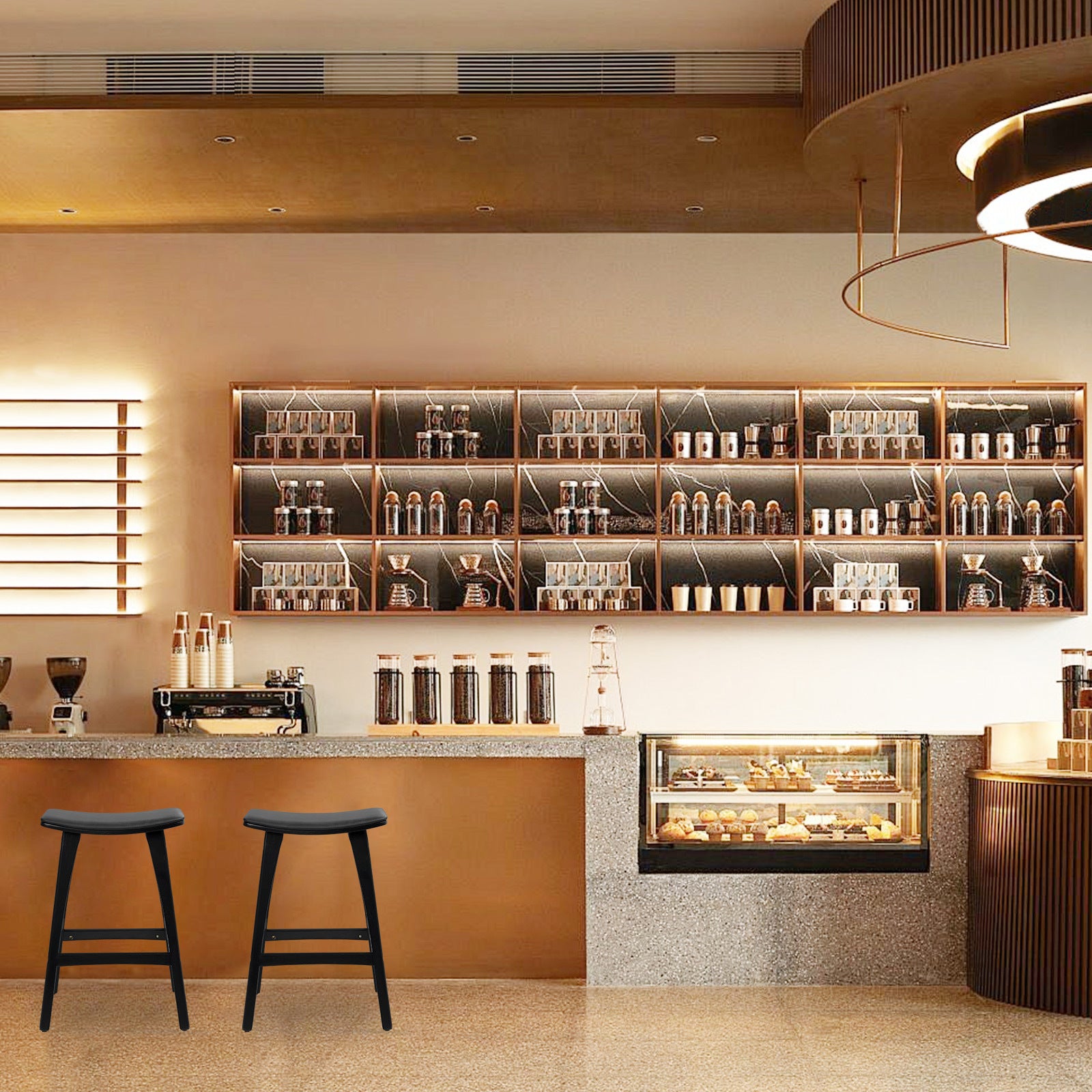 4X Wooden Bar Stool Padded PU Leather Dining Chair KANSO 65cm BLACK