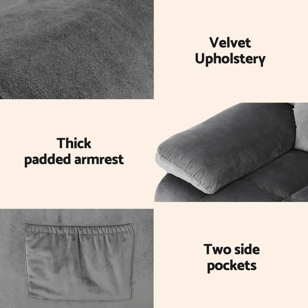 Artiss Recliner Chair Electric Massage Chair Velvet Lounge Sofa Heated Grey