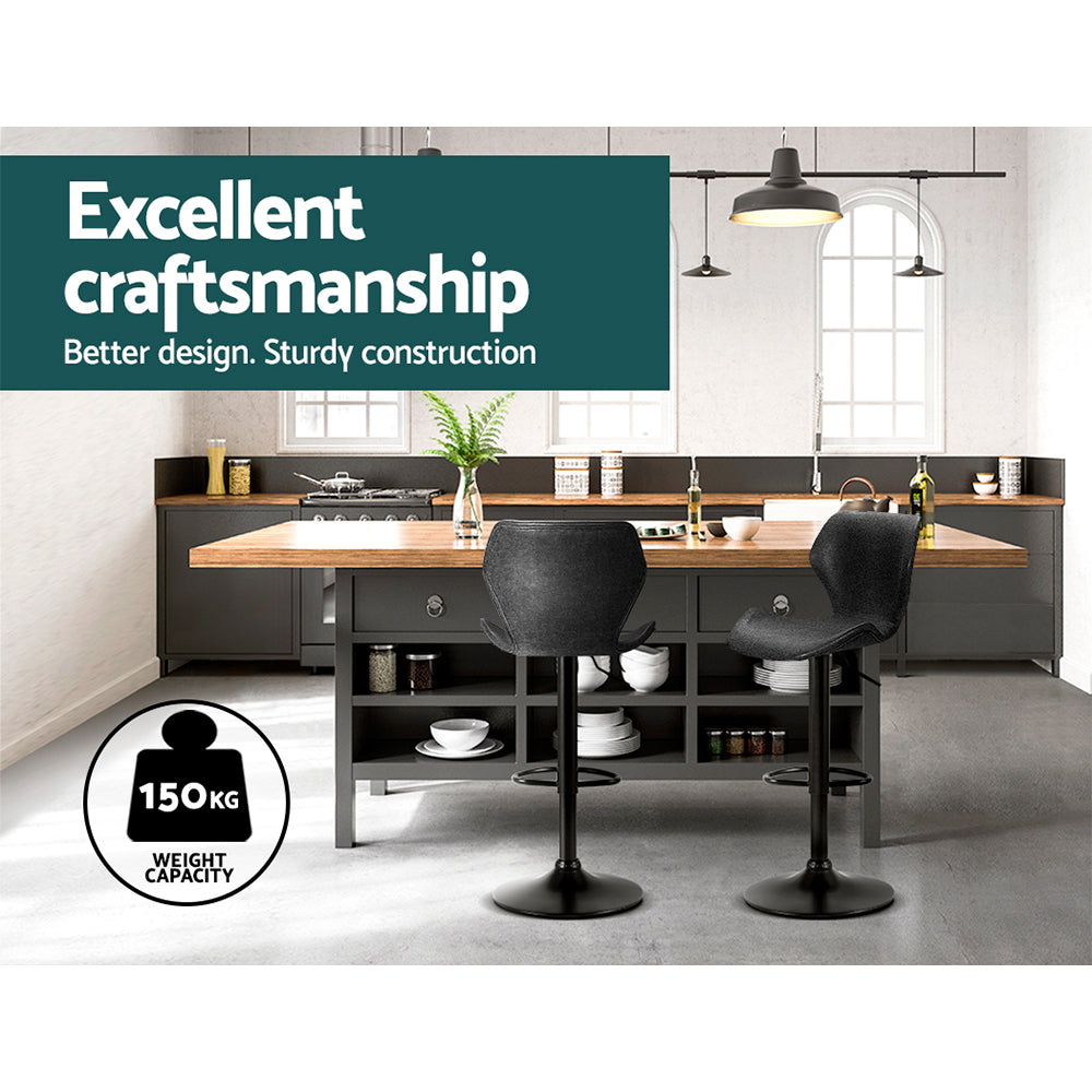 Artiss Bar Stools Kitchen Counter Stools Swivel Gas Lift Vintage Chairs Black x2
