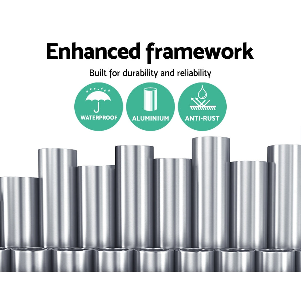 Measuring 2.5m x 2m, our folding arm awning comprises a powder-coated aluminium frame and a high-quality 300gsm polyester fabric shade. Both frame and shade are made UV-resistant and designed to be durable and longlasting in all kinds of weather conditions(Only for normal weather condition,extrem weather condition is excluded).