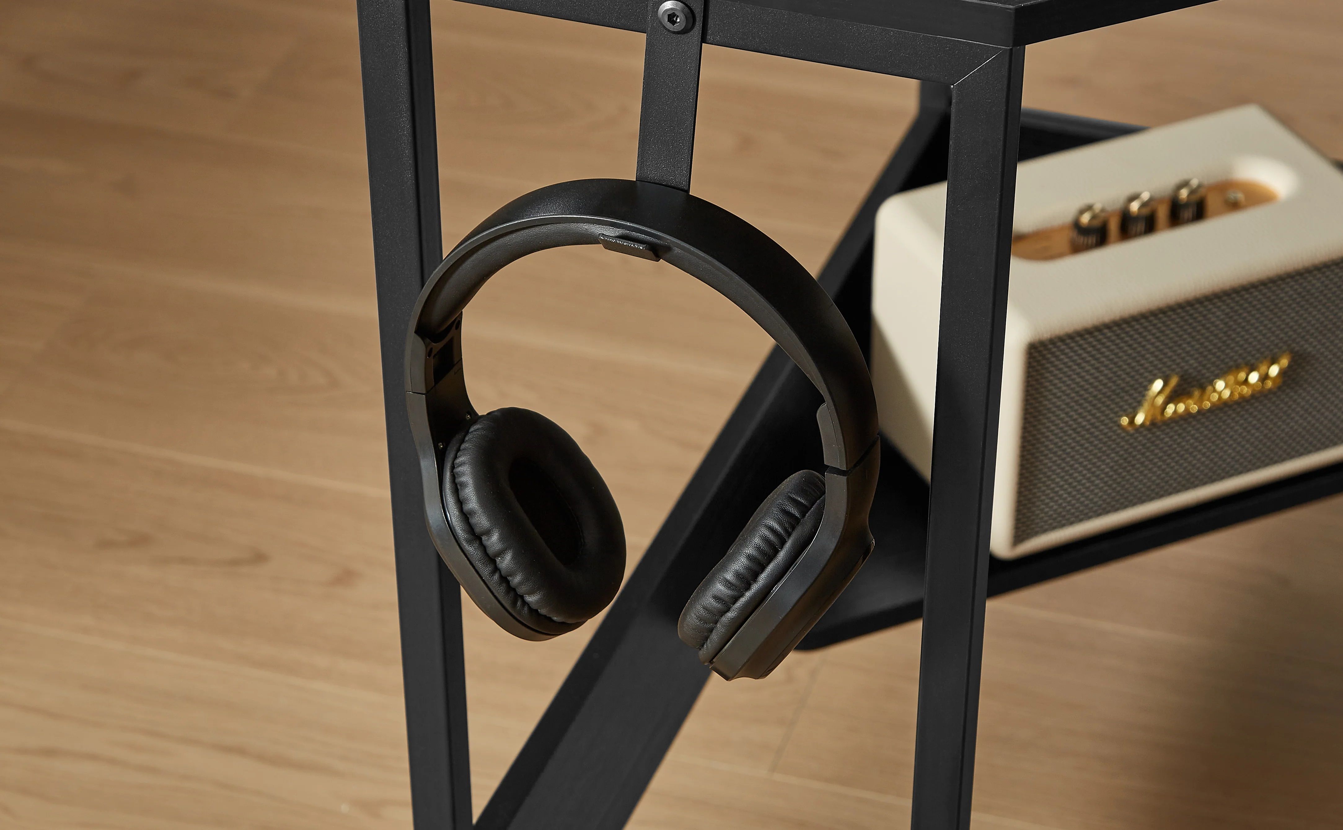 The perfect corner desk for any workspace. Its sleek black design and L-shape maximize space while the integrated charging hub keeps all your devices charged with 2 power outlets, 2 USB-A ports, and a USB-C port. Never worry about running out of power again!