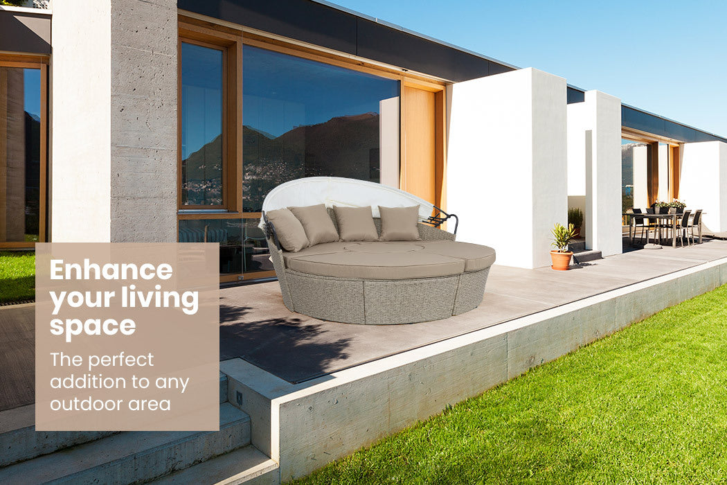 The day bed is fitted with a retractable roof canopy which can be adjusted depending on how much shade you require. This premium piece of outdoor furniture comes with four throw pillows, and is designed to stand the test of time and provide utmost comfort.ÂÂ