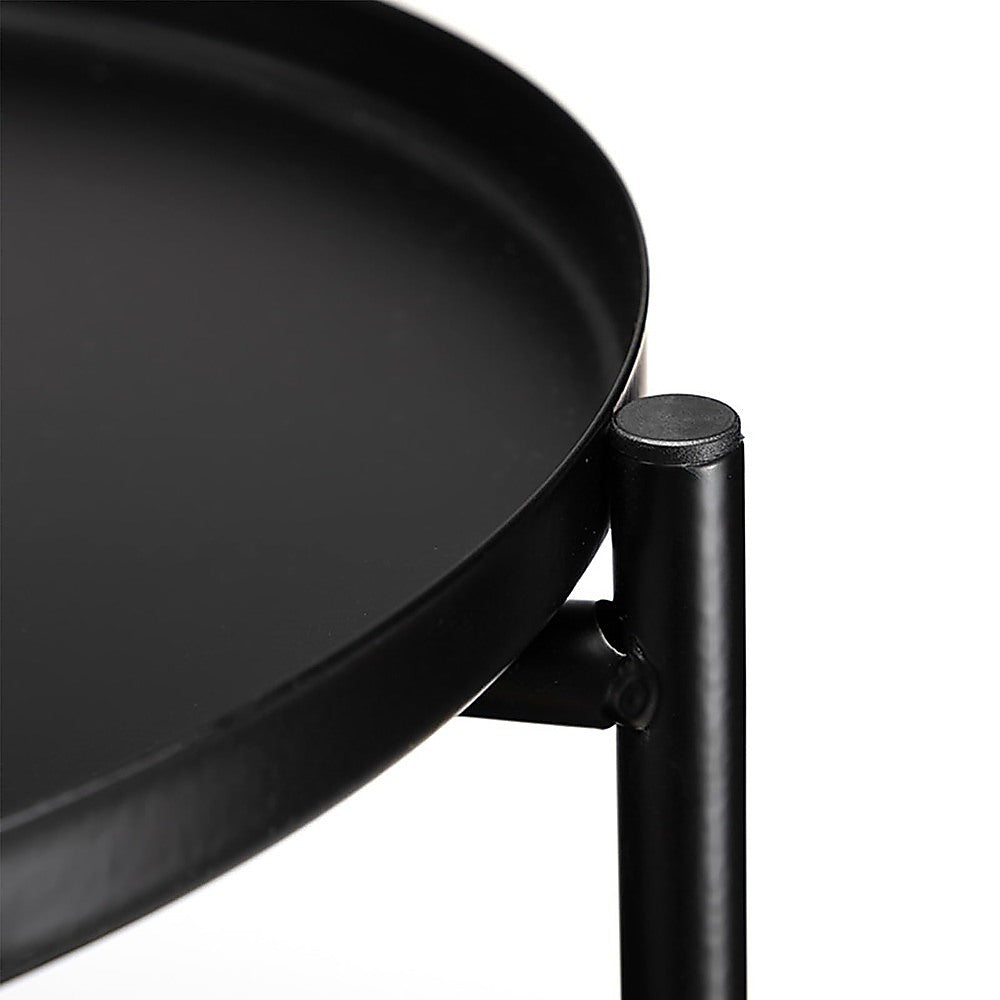 Introducing our hassle-free Side Table - no screws, no bolts, simply easy assembly! Crafted from sturdy steel, this metal round table can be effortlessly assembled in seconds without any tools. Its versatile design features a removable top tray for convenient access and a bottom fabric basket for additional storage solutions.Perfect for a variety of uses, it excels as a bedside table, keeping essentials like your phone, clock, and lamp close at hand. Alternatively, it functions beautifully as a sofa side table, ideal for snacks, drinks, and keeping items like phones, magazines, and remote controls within easy reach.With its modern pop style, this table adds a vibrant touch to any living space. The detachable tray top enhances usability, making it perfect for serving food, tea, or breakfast in bed. The raised rim provides ample storage space for cushions, blankets, magazines, books, and more, making it a versatile and stylish addition to your home.Specifications:Colour: BlackShape: RoundFeatures: MultifunctionalProduct Dimension: 45.5 x 52cmNote:COM (change of mind) Return Policy:The product must be unopened and in brand new condition, with the return to be organised by the customer. Once received and verified to be in the condition specified, refund is only of the item value minus 15% restocking fee (not including initial shipping). An additional return charge, which is same cost as that of initial shipping, will be deducted from the refund on returns due to delivery failure caused by customer error. For the health and safety of our staff and other customers, we are unable to accept returns of personal use items.
