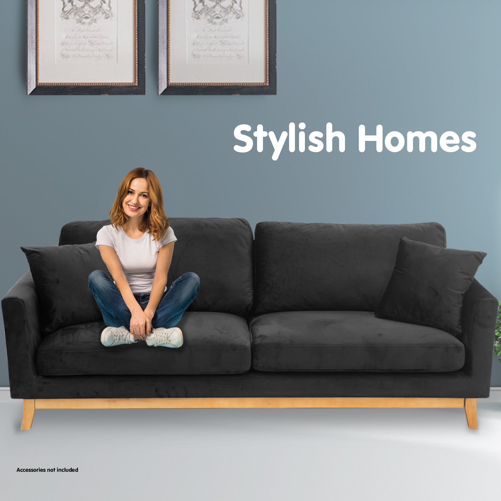 This Sarantino 3 Seater Faux Velvet Wooden Sofa Bed Couch Furniture in black is the perfect addition to any home. With its classic design and beautiful wooden legs, it will make a strong style statement in any living room.