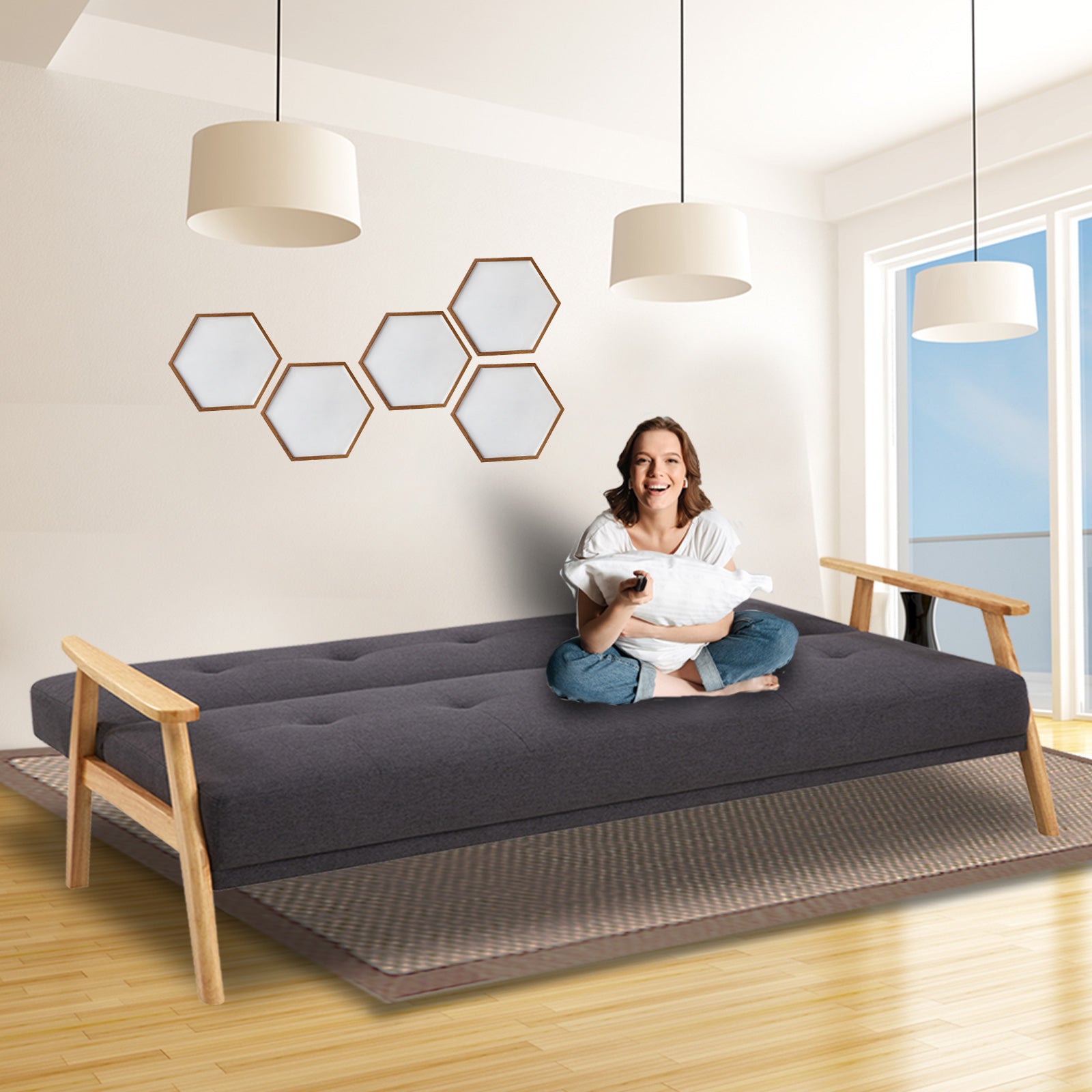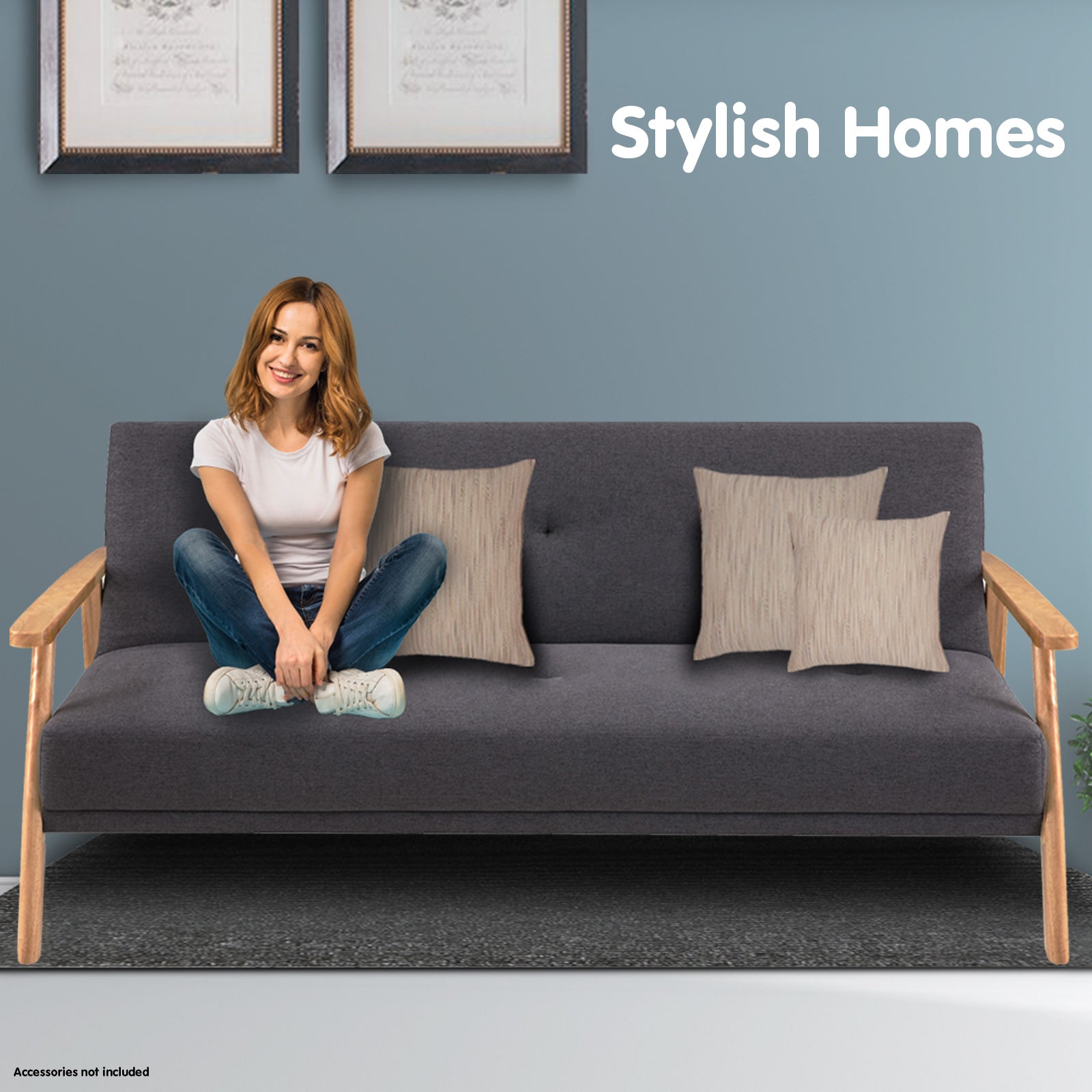 Sarantino 3 Seater Linen Fabric Wood Sofa Bed Lounge Couch Dark Grey