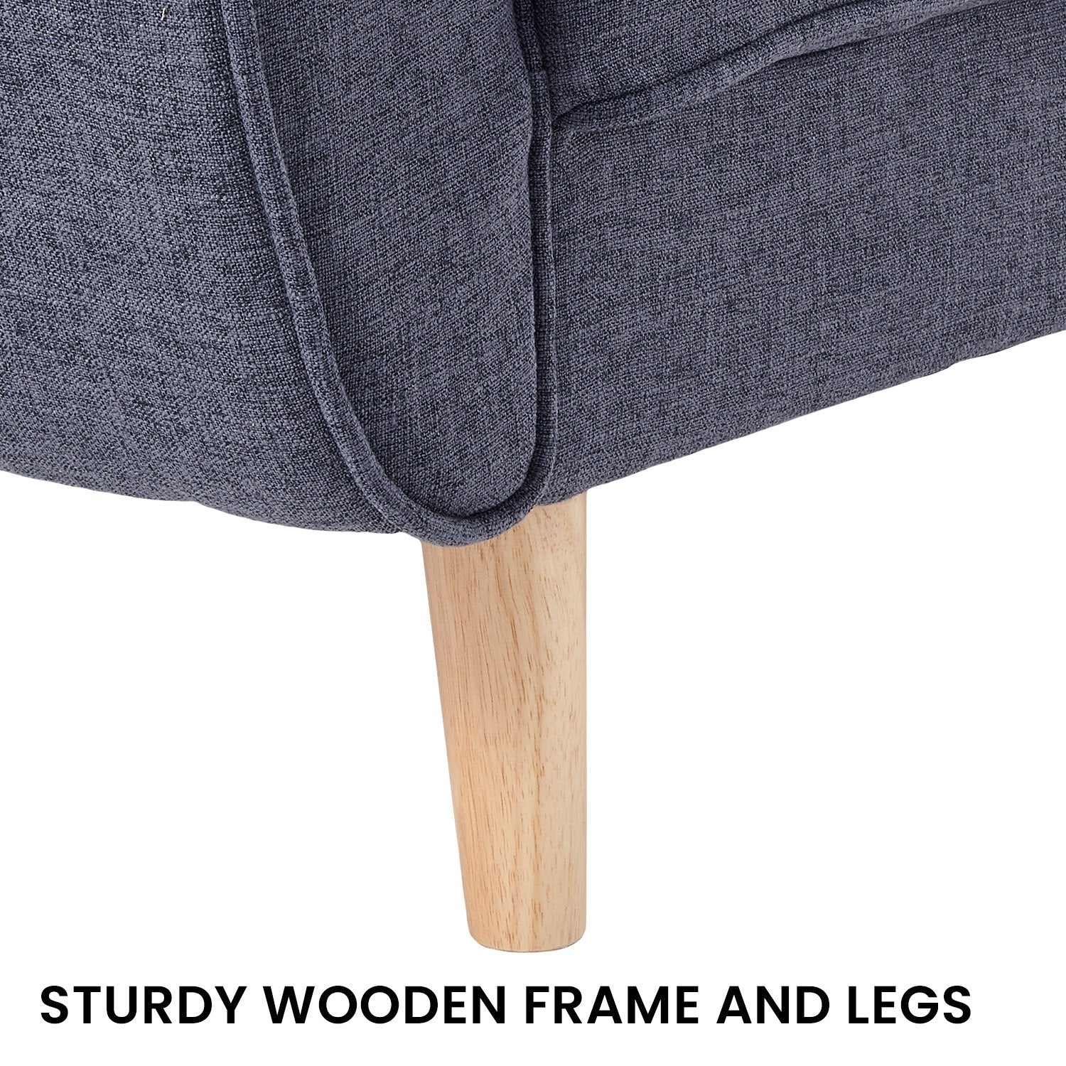 Sarantino 3 Seater Modular Linen Fabric Sofa Bed Couch Futon Suite - Dark Grey is a stylish and functional addition to any home. With its contemporary design and wooden legs, this sofa bed will make a strong style statement in your living space. Measuring 208cm (w) x 90cm (d) x 48cm (h), it features a sturdy wooden frame and comfortable seating for ultimate relaxation. This sofa bed is easily convertible into extra bedding space for your visitors, making it a highly practical and versatile piece of furniture.