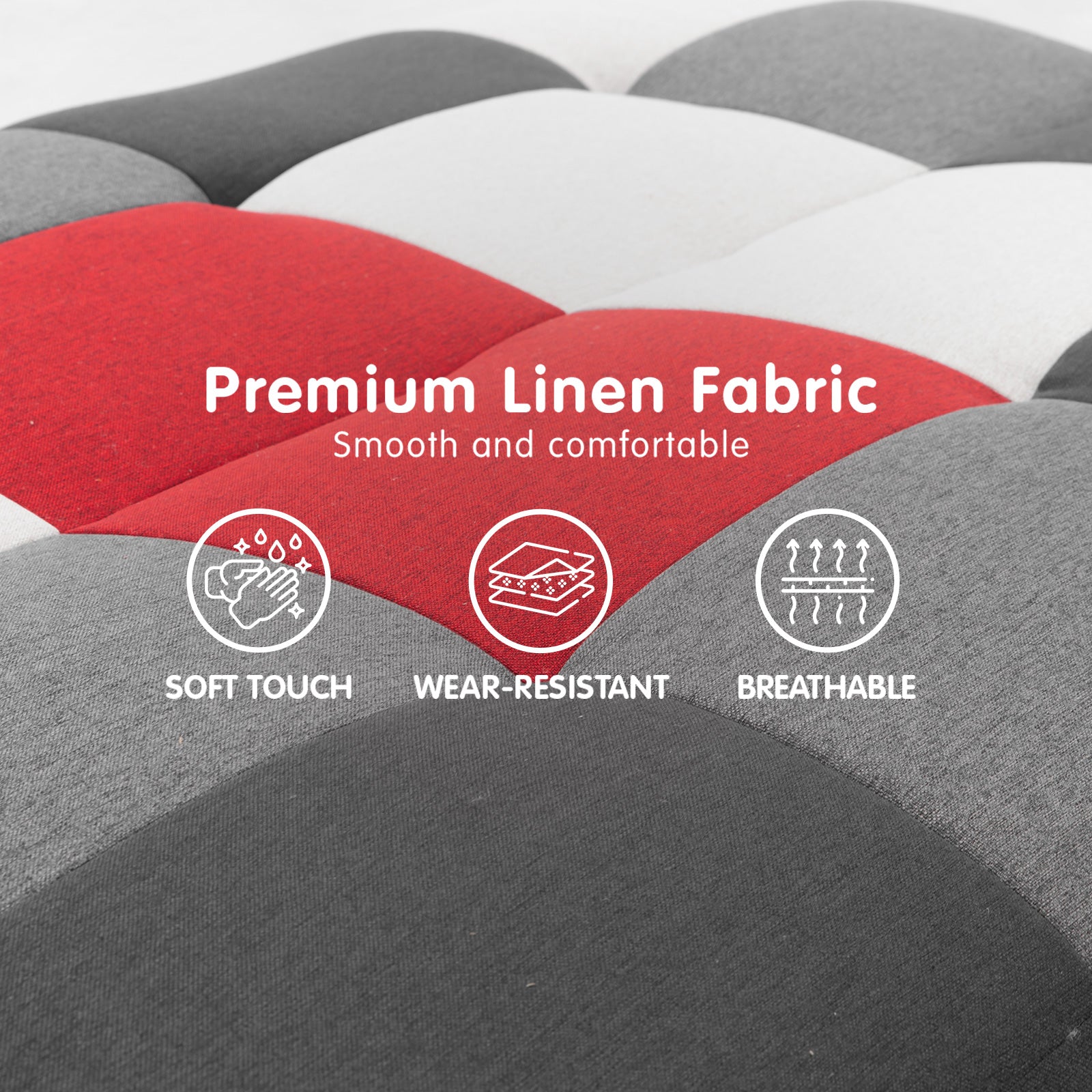Sarantino 3 Seater Modular Linen Fabric Wood Sofa Bed Couch - Multi-colour