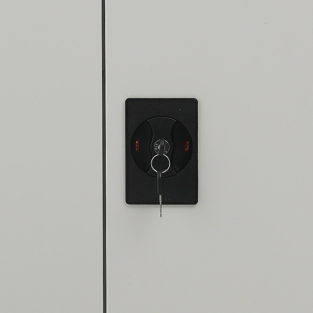 This two-door metal cabinet shelf storage is the perfect solution for your home, office, or gym. Made of cold-rolled steel with a special electrostatic paint, it is highly resistant to moisture and corrosion. The cabinet features four internal metal shelves, providing five storage spaces, and a bottom with lateral and central reinforcement for added durability. The metal hinges and galvanised pins ensure secure closure, while the safety lock with 2 anti-keys keeps your belongings safe.