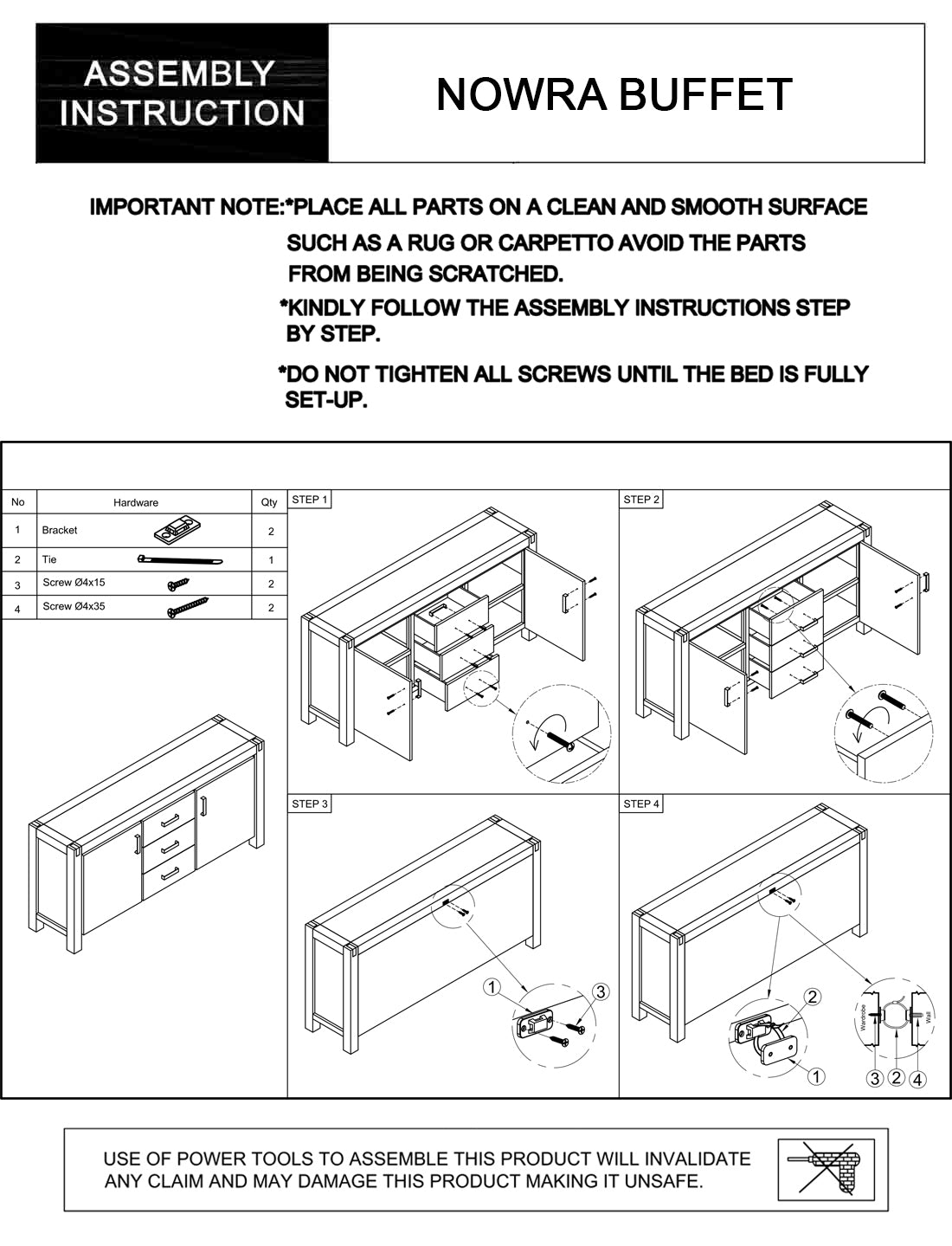 The Buffet is elevated with strong and sturdy wooden legs which mount it firmly with the ground. These also keep it a little high from the ground which enables you to clean away the dirt and dust underneath.