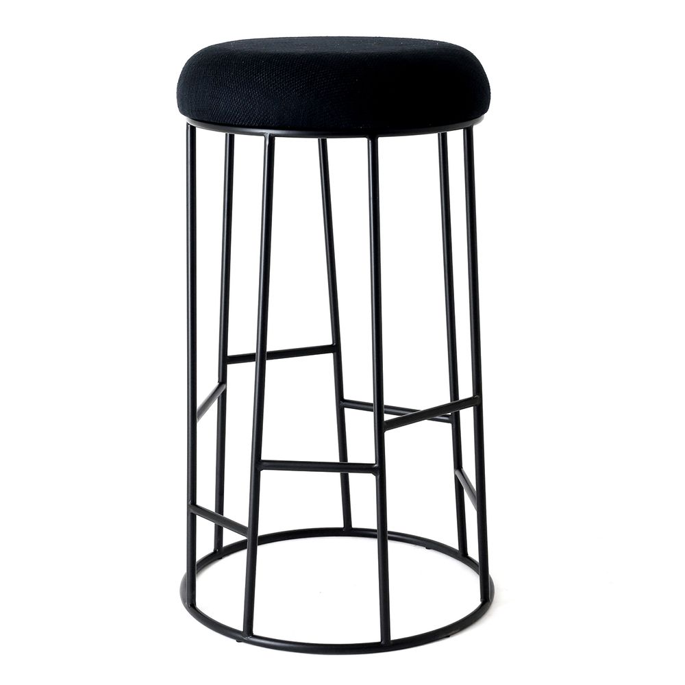 Aiden Black Steel Bar Stool - Black Linen