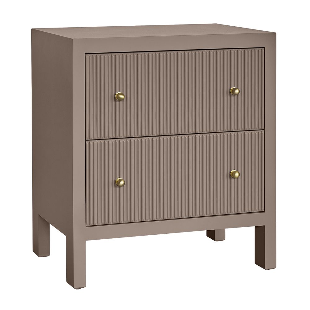 Discover the Ariana Large Bedside Table from the Ariana Bedside Table Range, now in a sophisticated taupe finish, with a small version also available in this colour, perfect for modern bedroom décor. Featuring fluted drawer fronts and brushed gold handles, this taupe nightstand adds texture and elegance, suiting contemporary or classic interiors. Its spacious design offers ample bedroom storage solutions, blending style and functionality seamlessly. Ideal for larger spaces, this taupe bedside table aligns with 2025 bedroom furniture trends, delivering minimalist, timeless aesthetics with effortless sophistication.