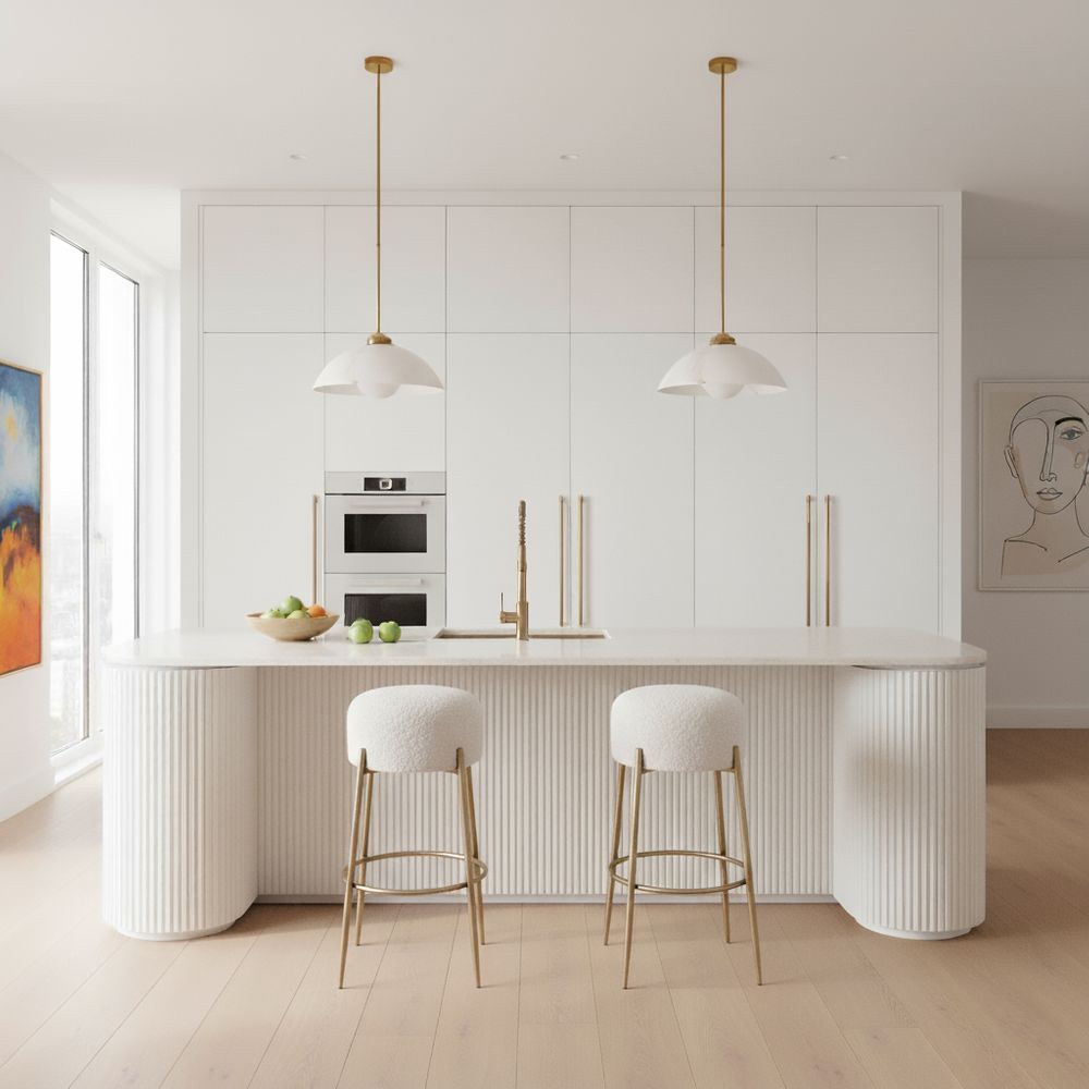 The Bryson Pendant Light brings sculptural elegance to contemporary interiors. Featuring a smooth half-dome shade with an alabaster-look finish and natural veining detail, it captures the timeless beauty of stone without the weight. A brushed brass rod and canopy add a touch of warmth and sophistication, creating a refined balance of texture and tone. Perfect for kitchens, dining areas, or hallways, the Bryson Pendant casts a soft, ambient glow that enhances any space with understated luxury.