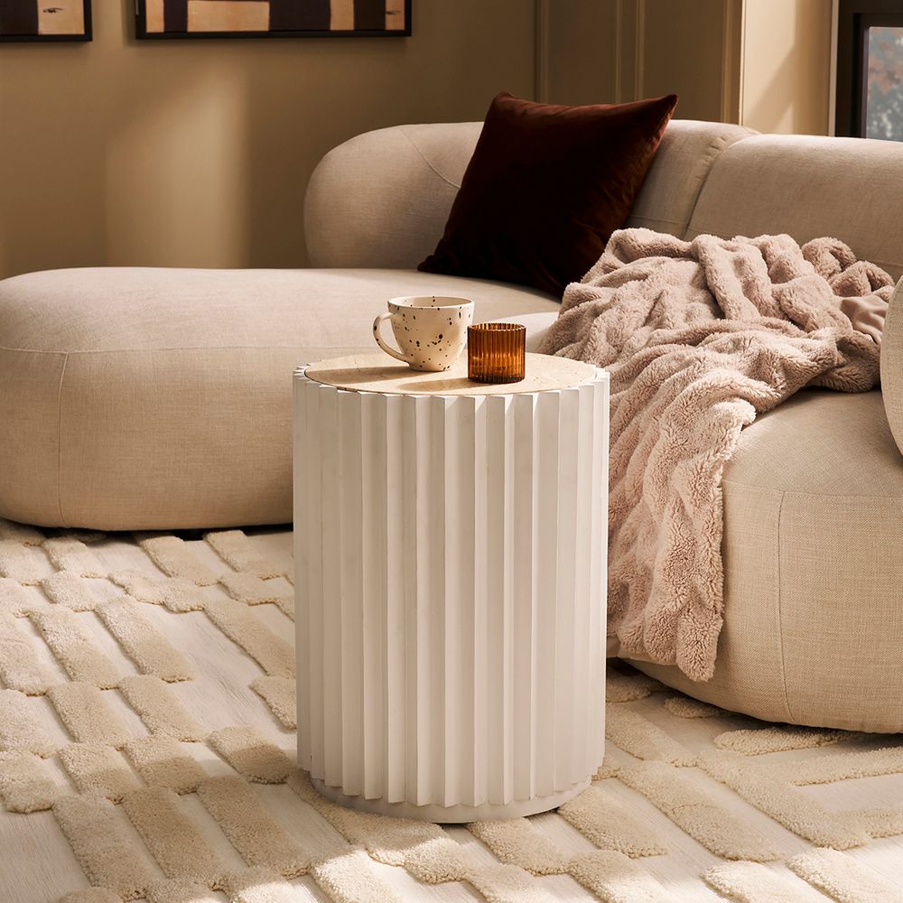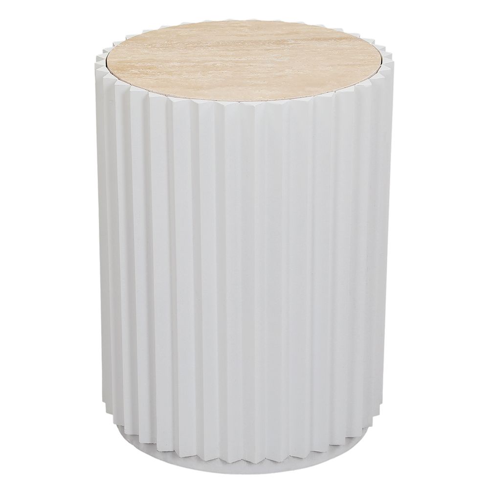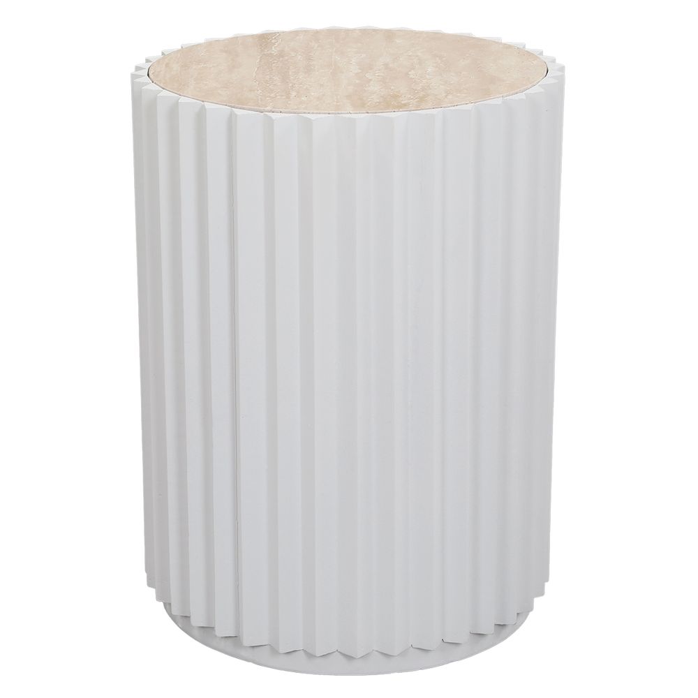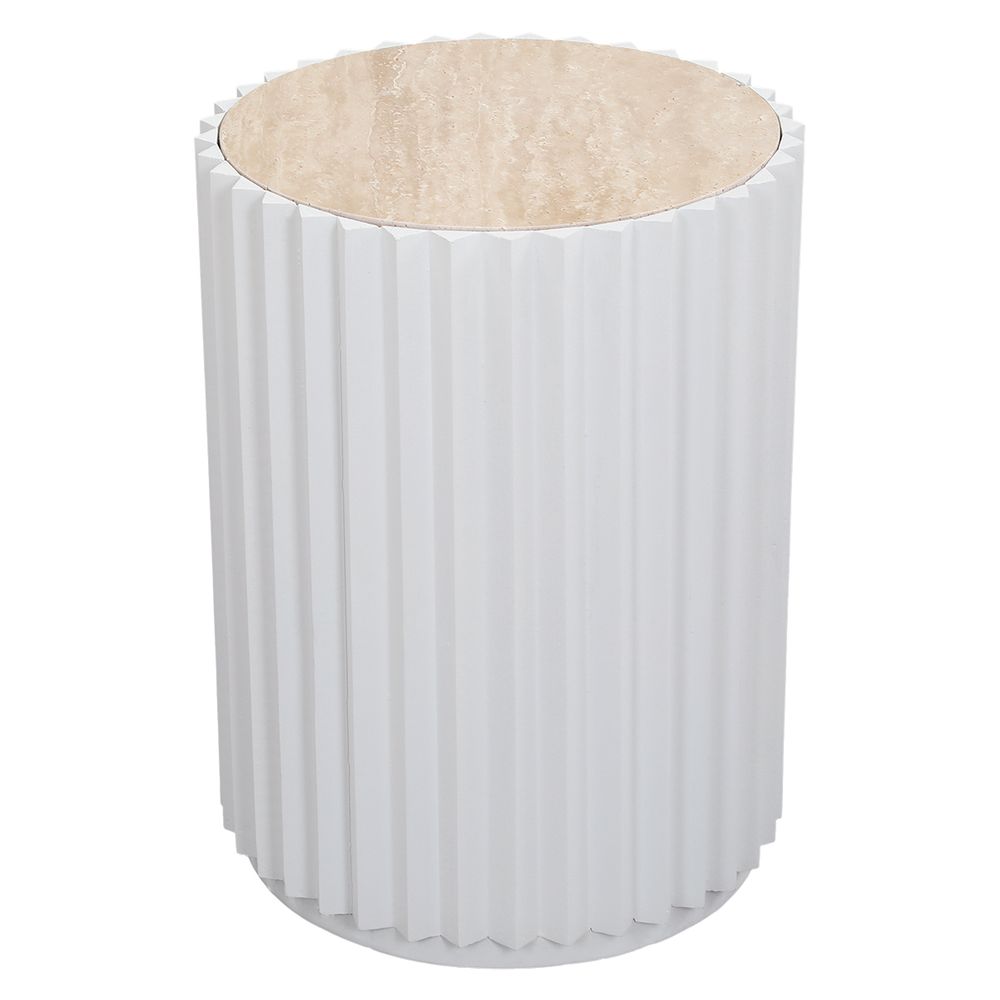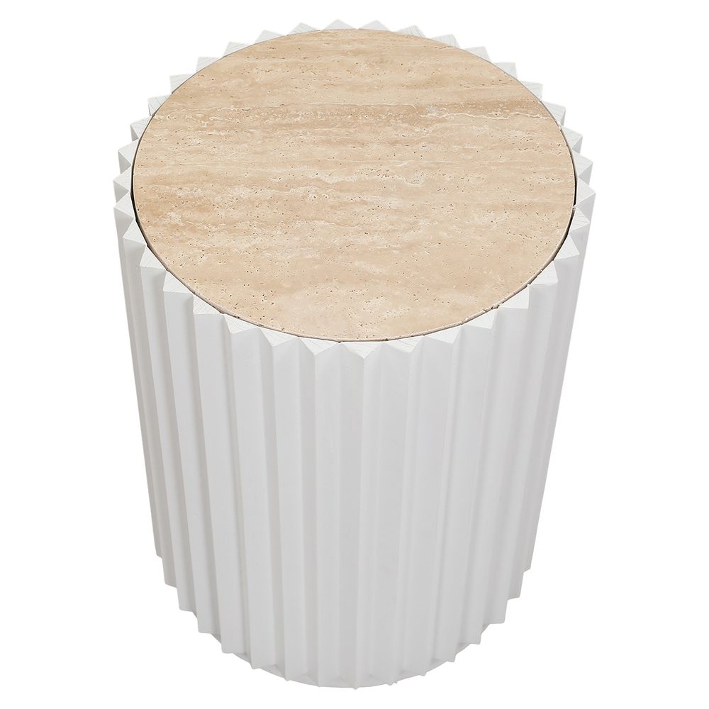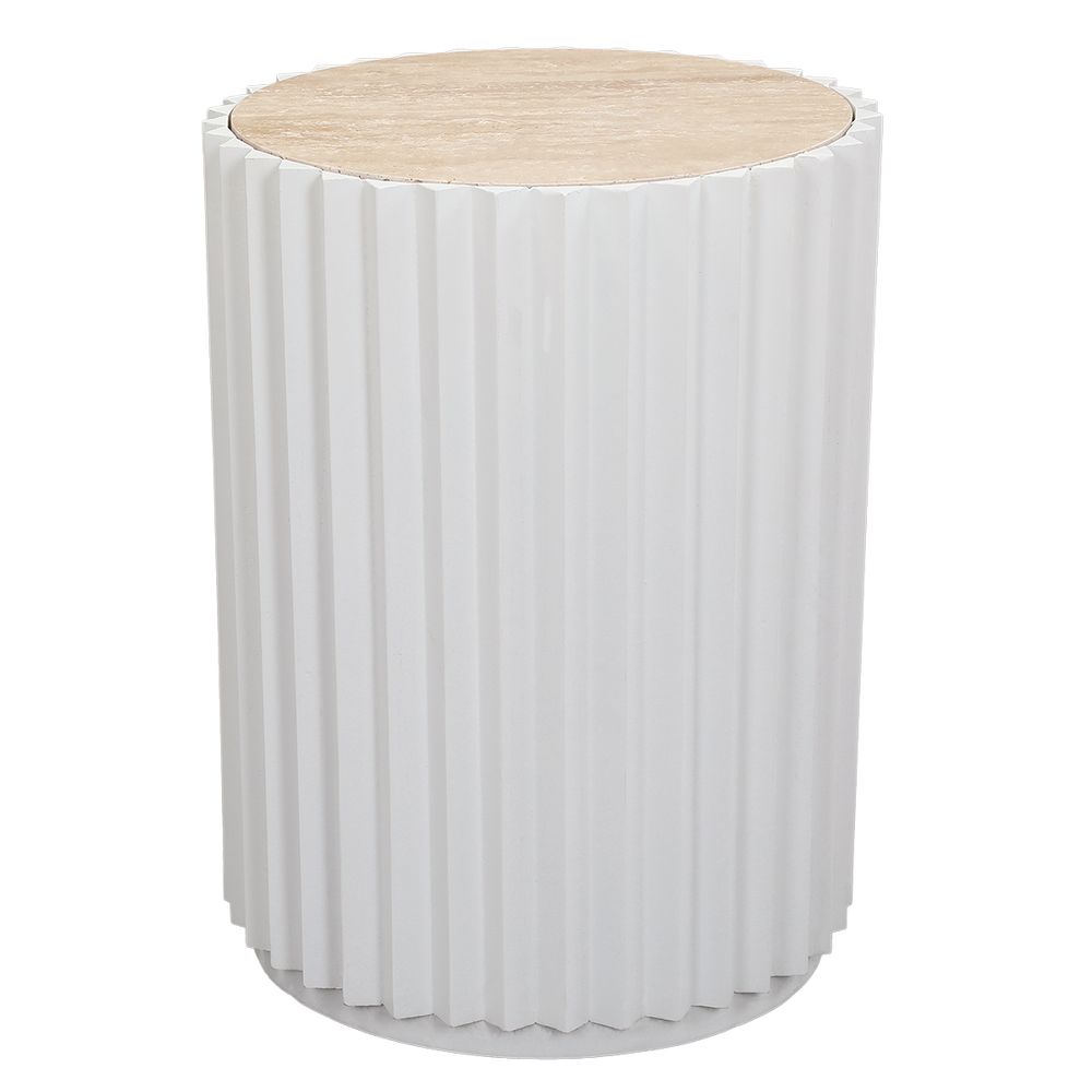 Make a bold statement with this fluted side table, available in three sophisticated finishes: black, white, and walnut. Featuring a smooth travertine top and a striking fluted base, these tables combine texture and elegance, making them the perfect accent for any living space. Whether styled individually or paired together, their versatile design enhances both modern and classic interiors. Ideal for displaying décor or as functional side tables, they bring a touch of timeless charm to your home.