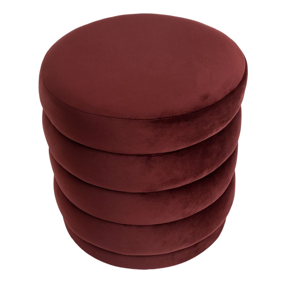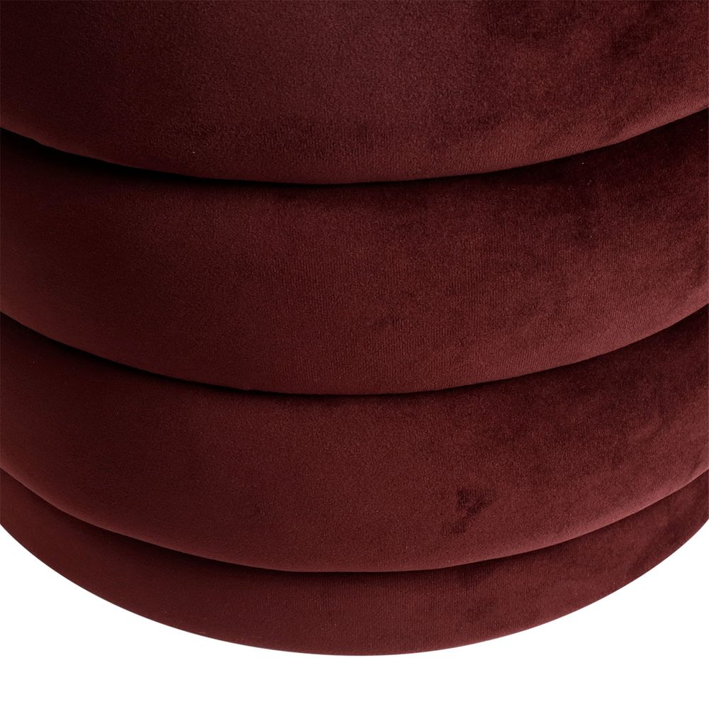 Add a sculptural accent to any room with this richly upholstered velvet stool. Featuring a distinctive tiered silhouette, its compact round form is fully covered in luxurious Mulberry velvet for a bold yet elegant statement. Whether used as occasional seating, a vanity stool, or a decorative side piece, its plush texture and deep hue add warmth and sophistication to both modern and classic interiors. Also available in additional velvet colourways to suit a range of design schemes.