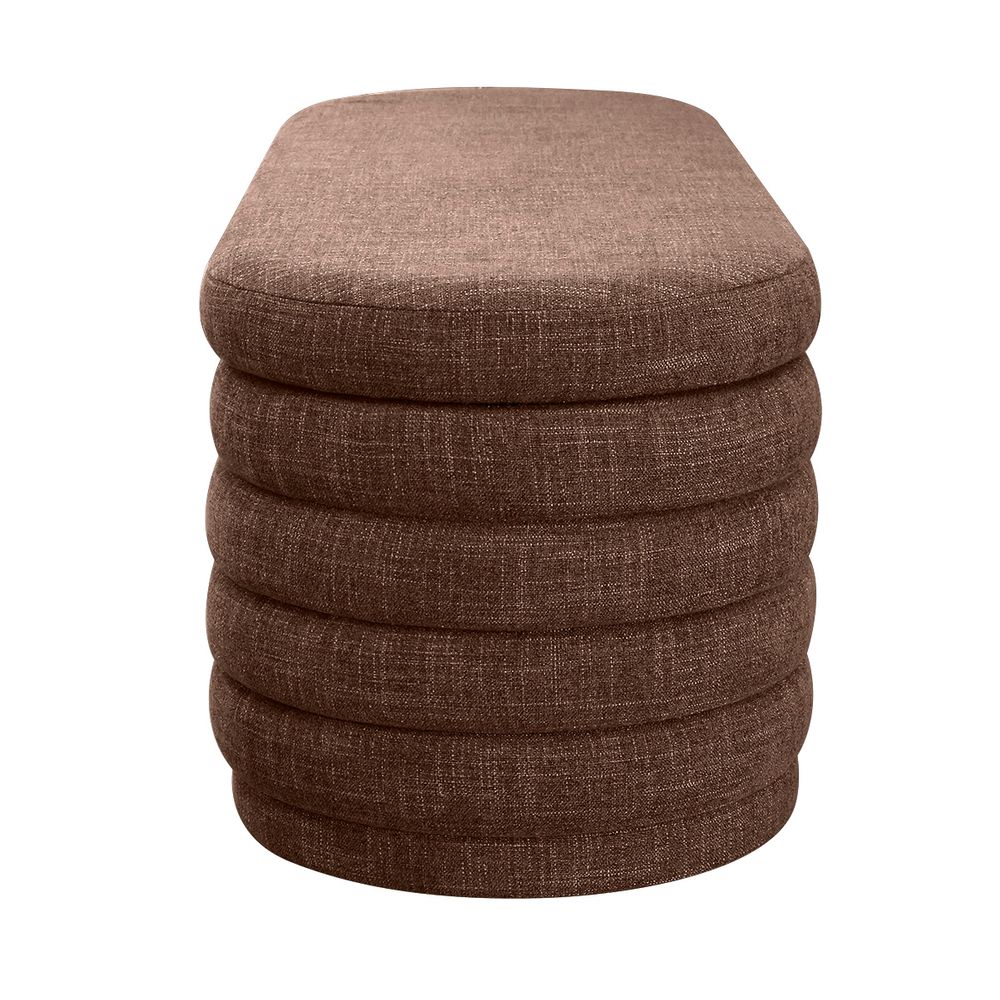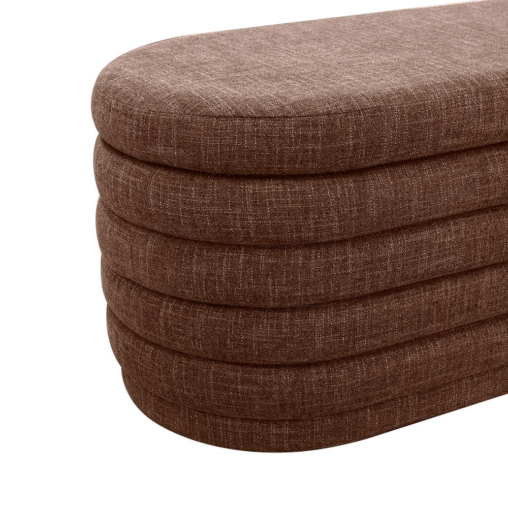 Infuse a grounded, sophisticated ambiance into the versatile Demi range with the Demi Storage Bench Ottoman, upholstered in rich chocolate fabric. Its soft curves and panelled detailing craft a refined silhouette, while the deep hue adds warmth and depth to any setting. Featuring a lift-up lid that unveils generous hidden storage, it effortlessly combines elegance with practicality. Available in a curated selection of colours and fabric finishes to complement a wide range of interior styles.