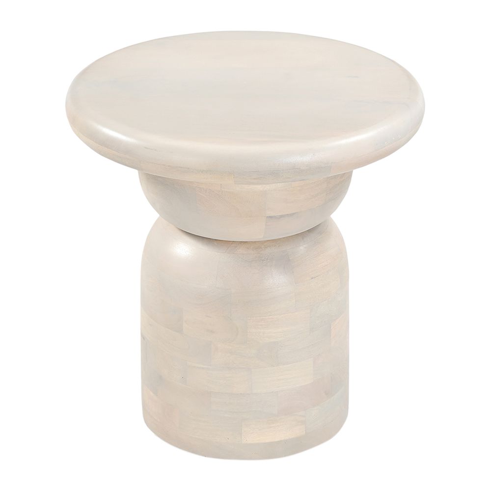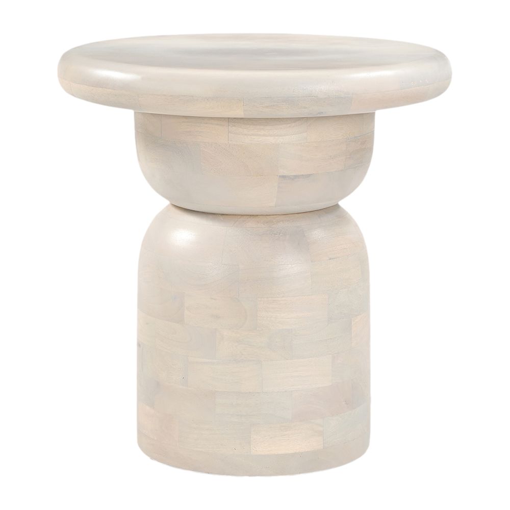 Part of the new Denison range, the Denison Side Table brings sculptural elegance to contemporary interiors. Expertly crafted from solid mango wood with a smooth white-stained finish, it features a rounded top and a softly curved pedestal base, creating a bold yet organic silhouette. Designed as a functional accent for living spaces or bedrooms, this piece blends artisanal craftsmanship with modern form. The result is a timeless table that introduces texture, warmth and understated sophistication to any setting.