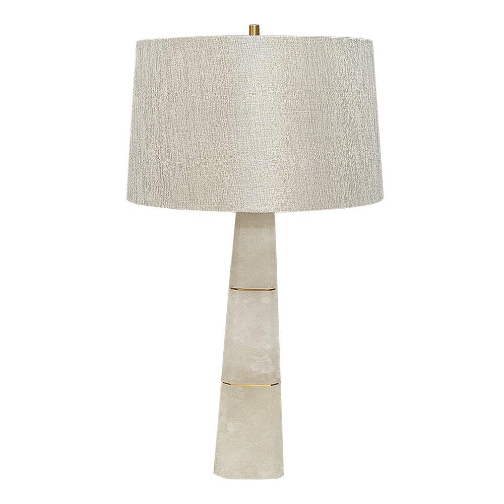 Enhance your home with the timeless elegance of the sophisticated Dublin table lamp. The exquisitely crafted alabaster tiered base exudes luxury and refinement, making it a stunning addition to any space. Paired with a tapered white faux linen shade, its clean lines and soft texture beautifully diffuse light, creating a warm and inviting atmosphere. This lamp is an ideal choice for adding a subtle yet impactful accent to your living room, bedroom, or office.
