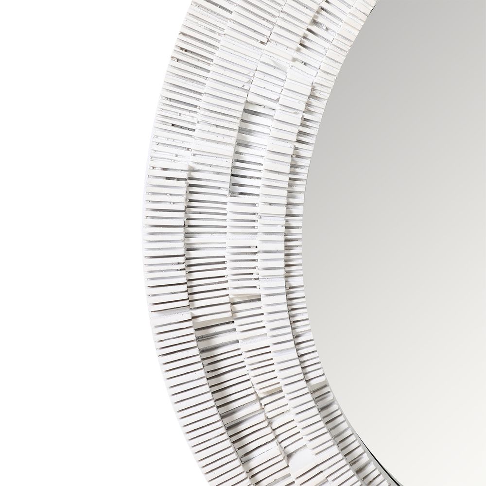 Elevate your interior with this Dunbar wall mirror, designed to bring texture and depth to any space. Featuring a handcrafted frame with a matte finish in a crisp white hue, this piece exudes contemporary elegance while maintaining a timeless appeal. Its flat, clear mirror surface enhances natural light, creating an open and inviting atmosphere. Whether styled as a statement piece in an entryway or as a refined accent in a living room or bedroom, this mirror seamlessly blends with both modern and coastal aesthetics.