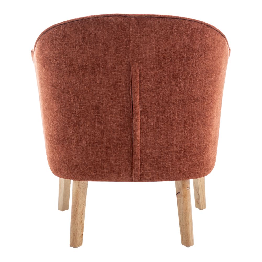Infuse timeless sophistication into your space with this elegantly designed occasional chair, seamlessly blending comfort with contemporary appeal. Upholstered in terracotta chenille, the soft and textured fabric enhances its luxurious feel, making it a versatile addition to both modern and classic interiors. The sculptural silhouette, complemented by gently curved arms and a supportive backrest, offers both style and relaxation. Resting on sturdy rubber wood legs, this chair is as durable as it is stylish, grounding its refined design with a touch of organic warmth. Whether styled as a statement piece or paired with other elements from the range, this occasional chair brings a harmonious balance of comfort and sophistication to any setting.