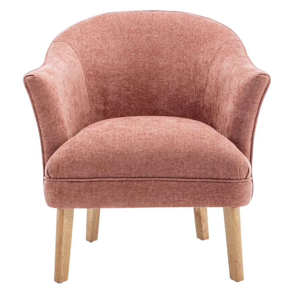 Infuse timeless sophistication into your space with this elegantly designed occasional chair, seamlessly blending comfort with contemporary appeal. Upholstered in coral chenille, the soft and textured fabric enhances its luxurious feel, making it a versatile addition to both modern and classic interiors. The sculptural silhouette, complemented by gently curved arms and a supportive backrest, offers both style and relaxation. Resting on sturdy rubber wood legs, this chair is as durable as it is stylish, grounding its refined design with a touch of organic warmth. Whether styled as a statement piece or paired with other elements from the range, this occasional chair brings a harmonious balance of comfort and sophistication to any setting.