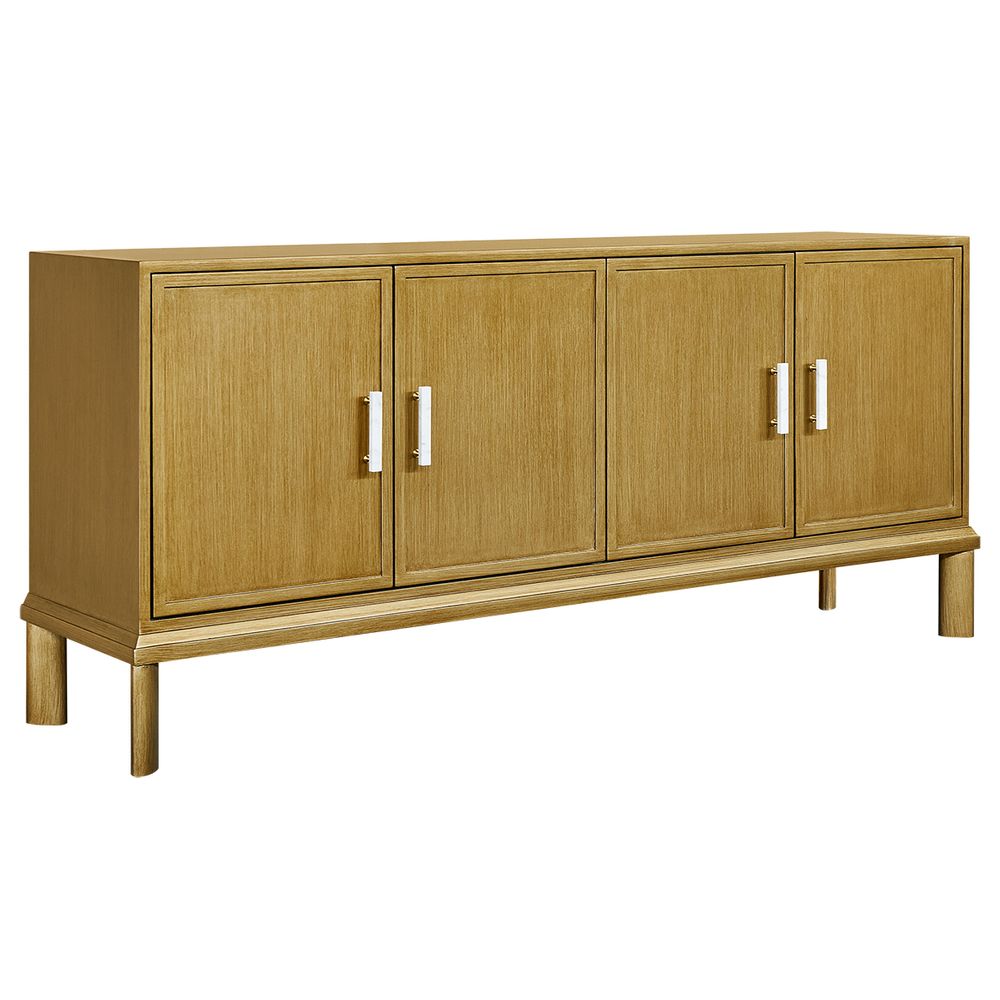 The Jill Buffet in Antique Gold brings a warm, elevated finish to dining or living spaces. Four doors conceal spacious internal storage, while clean lines and geometric legs echo timeless design. Polished white marble handles introduce a crisp detail, creating a refined, versatile statement piece.