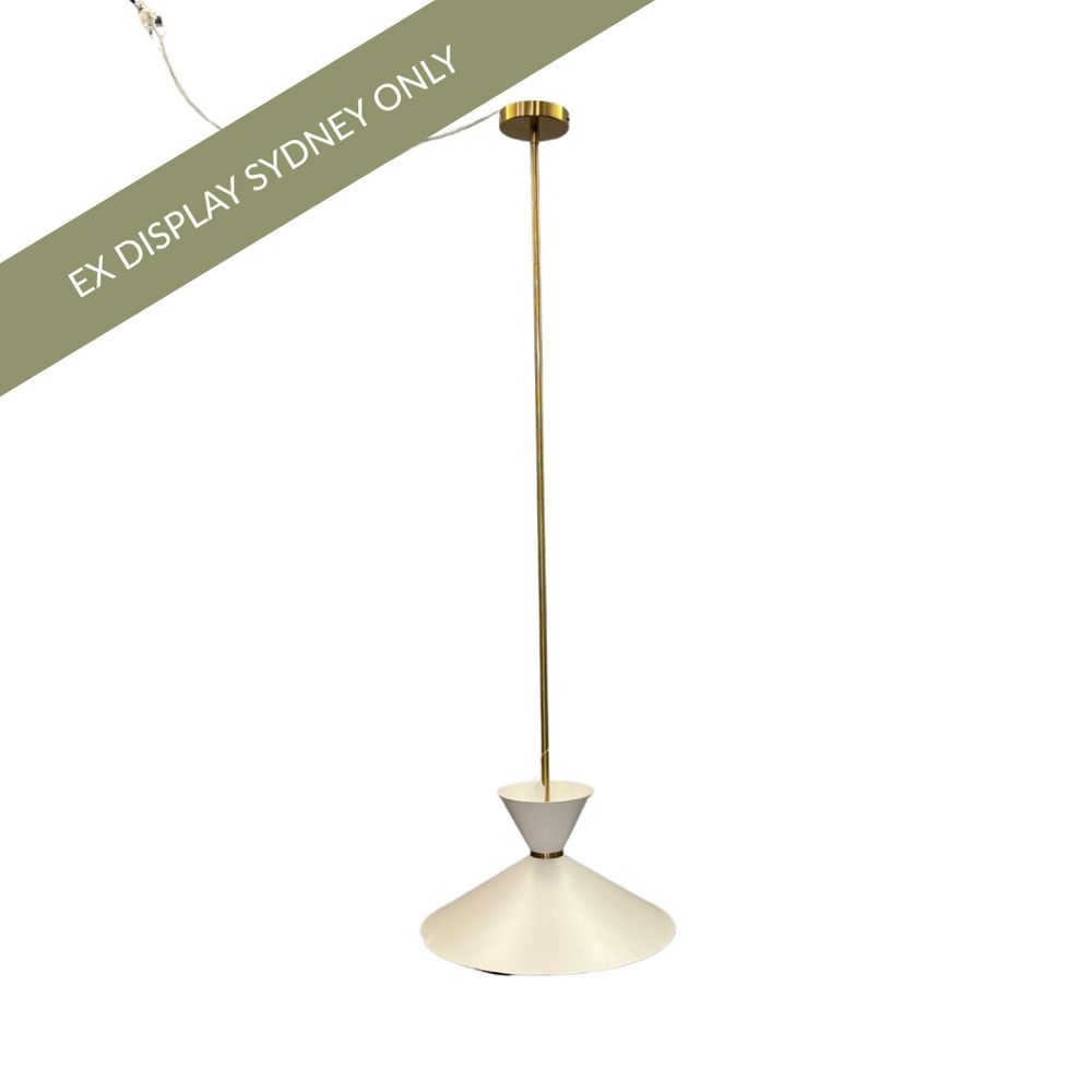 The Oslo Pendant – Large White pairs minimalist form with refined detailing, making it a striking choice for modern interiors. Crafted with a matte white iron shade, its sculptural cone silhouette is accented with an electroplated brass band and suspension rod for a touch of contrast. Measuring 45cm in diameter and 19cm high, it comes with a 120cm adjustable rod for versatile installation. Ideal for dining, kitchen, or living spaces.
