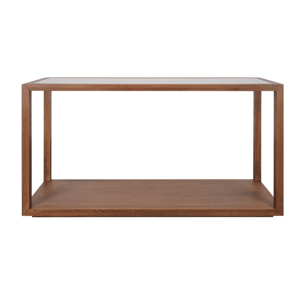 The Sadie Console Table in Walnut offers timeless warmth with a contemporary edge. Featuring a rich walnut timber frame and a floating tempered glass top, this piece brings a sense of refined balance to any room. The open lower shelf adds depth and practicality—perfect for styling with books, baskets or collected objects. Its clean, architectural lines and warm woodgrain make it a versatile choice for classic, modern, or transitional spaces. Whether in an entryway or living room, Sadie in Walnut adds understated elegance with a natural touch.