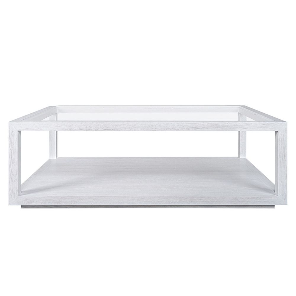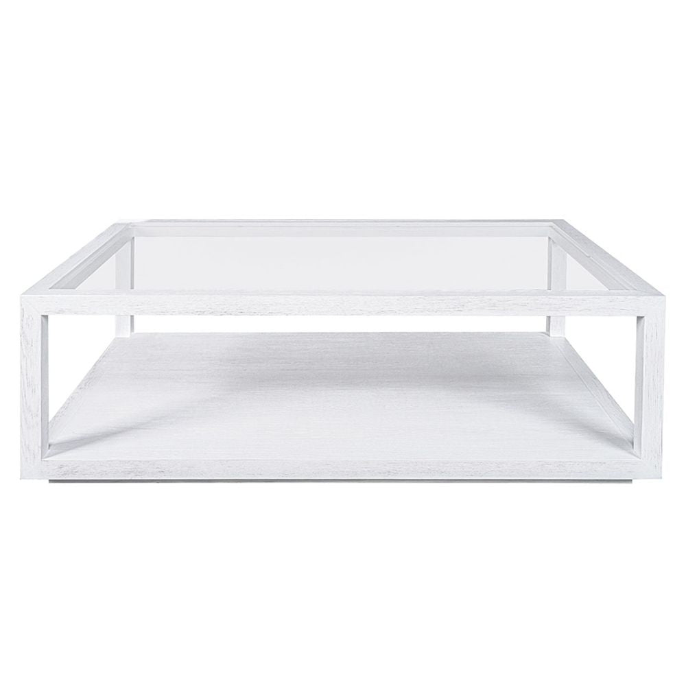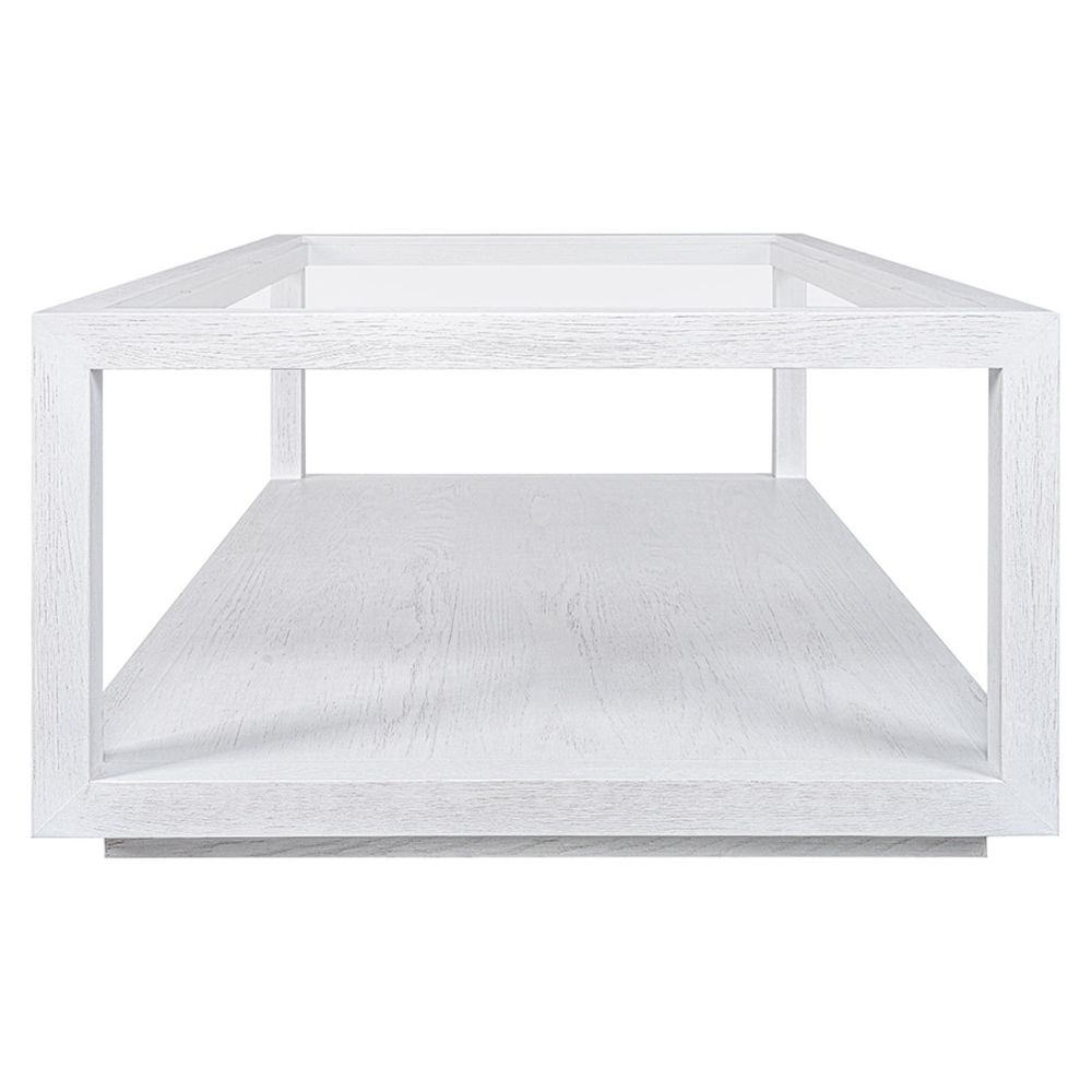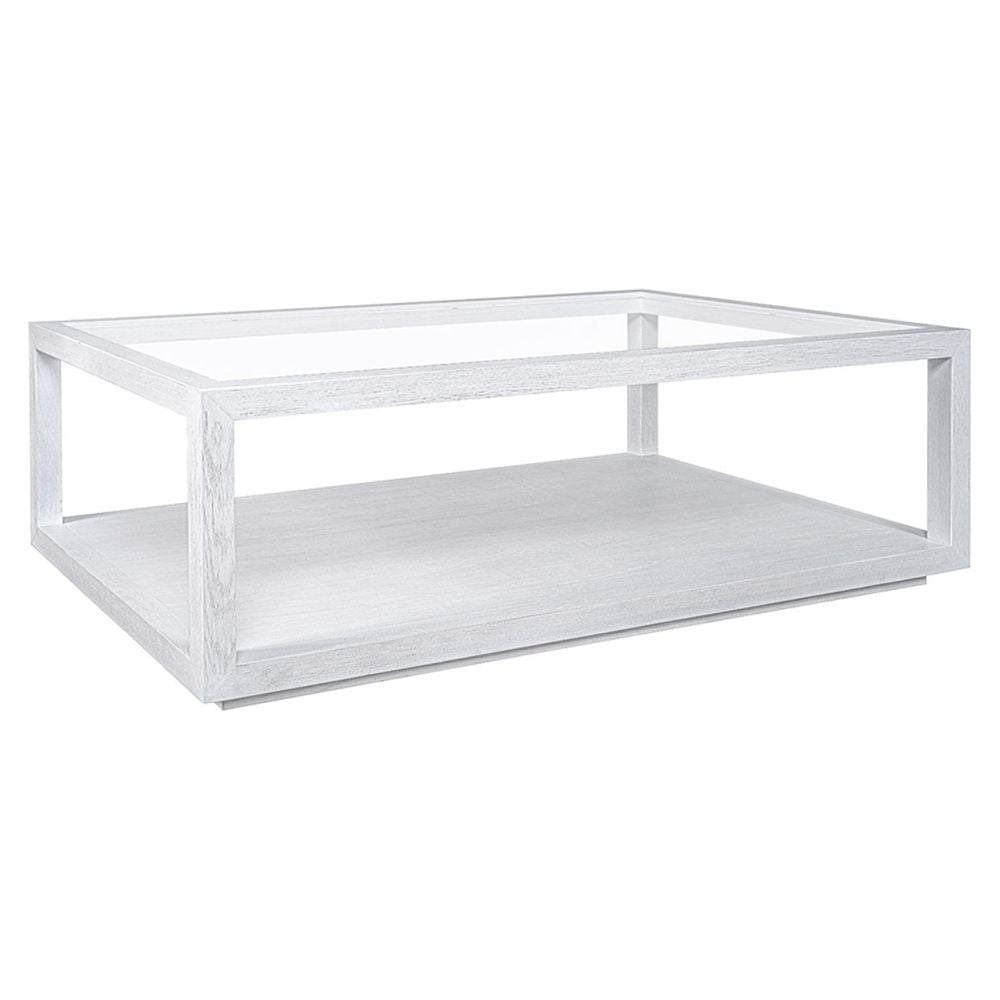 The Sadie Collection showcases a perfect balance of brushed oak wood and sleek tempered glass, designed to bring effortless sophistication to modern and classic interiors. Bringing this refined aesthetic into focus, the Sadie Rectangular Coffee Table features a brushed oak frame in a crisp white finish, adding a fresh and airy feel to any space. The crystal-clear tempered glass top enhances natural light, creating an open and elegant look, while the lower oak shelf offers practical storage or a display surface for curated décor. With clean lines and a minimalist silhouette, this coffee table seamlessly integrates into contemporary and traditional interiors, making it a statement piece that embodies both function and style.