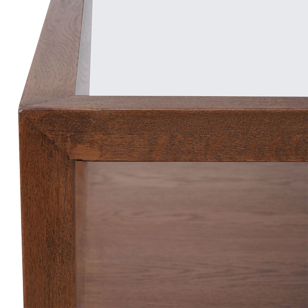 The Sadie Collection showcases a perfect balance of brushed oak wood and sleek tempered glass, designed to bring effortless sophistication to modern and classic interiors. Bringing this refined aesthetic into focus, the Sadie Square Coffee Table features a walnut brushed oak frame, introducing a rich, warm tone that adds depth and natural elegance to any space. The crystal-clear tempered glass top enhances the openness of its design, creating a light and airy feel. Designed for both style and functionality, the lower shelf provides additional space for storage or curated displays, making it an elegant yet practical centrepiece. Its minimalist silhouette integrates seamlessly into curated interiors, enriching any living space with a touch of timeless sophistication.