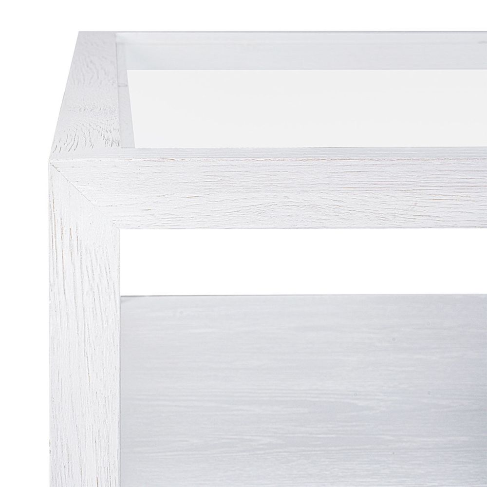 The Sadie Collection showcases a perfect balance of brushed oak wood and sleek tempered glass, designed to bring effortless sophistication to modern and classic interiors. Bringing this refined aesthetic into focus, Sadie Square Coffee Table features a white brushed oak frame, offering a fresh, airy elegance that brightens any space. The crystal-clear tempered glass top enhances the lightness of its design, creating an open and spacious feel. Designed for both style and functionality, the lower shelf offers additional space for storage or curated displays, making it an elegant yet practical centrepiece. Its minimalist silhouette integrates seamlessly into curated interiors, enhancing any living space with a touch of timeless sophistication.
