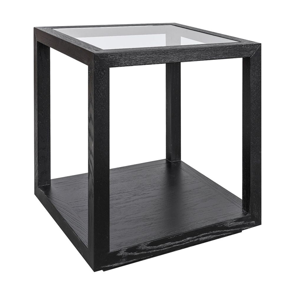 The Sadie Collection showcases a perfect balance of brushed oak wood and sleek tempered glass, designed to bring effortless sophistication to modern and classic interiors. With its clean lines and refined materials, the Sadie Square Side Table offers both durability and style. The brushed oak frame in a bold black finish introduces a striking contrast, while the crystal-clear tempered glass top enhances natural light, creating a sense of openness. Its minimalist silhouette makes it an ideal accent for living rooms, bedrooms, or hallways, seamlessly blending into curated spaces. Available in two sizes, this versatile piece infuses any setting with modern elegance and character.