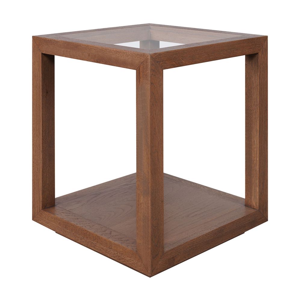 The Sadie Collection showcases a perfect balance of brushed oak wood and sleek tempered glass, designed to bring effortless sophistication to modern and classic interiors. With its clean lines and refined materials, the Sadie Square Side Table offers both durability and style. The brushed oak walnut finish introduces a timeless warmth, adding depth and a refined organic touch that complements various décor styles, while the crystal-clear tempered glass top enhances natural light, creating a sense of openness. Its minimalist silhouette makes it an ideal accent for living rooms, bedrooms, or hallways, seamlessly blending into curated spaces. Available in two sizes, this versatile piece infuses any setting with modern elegance and character.