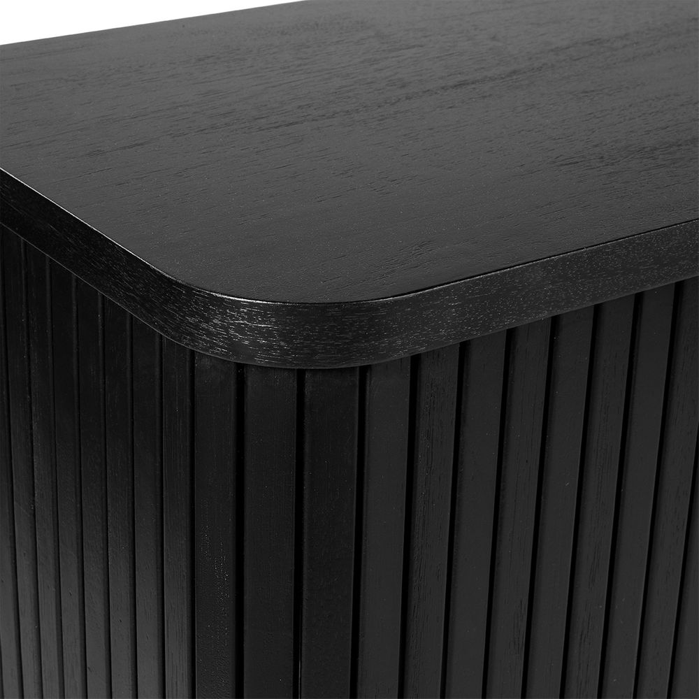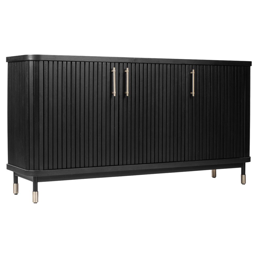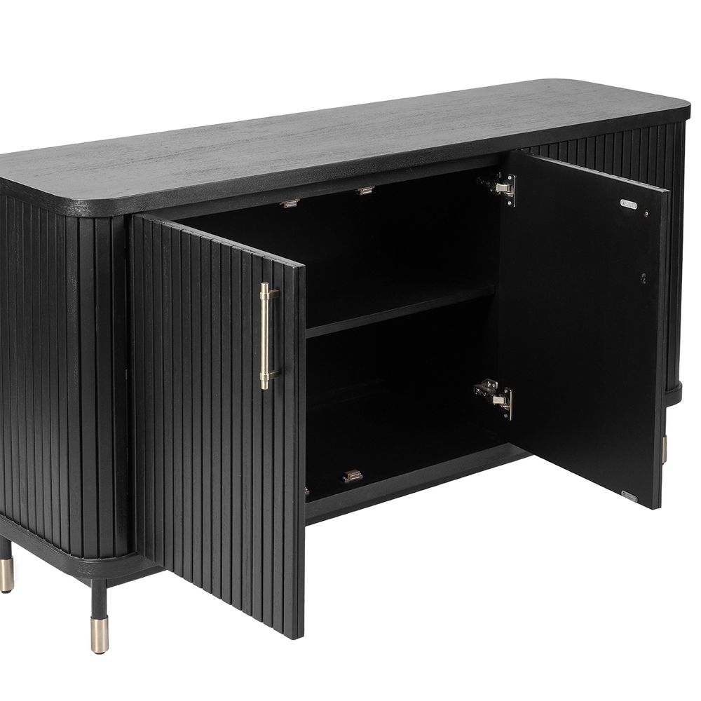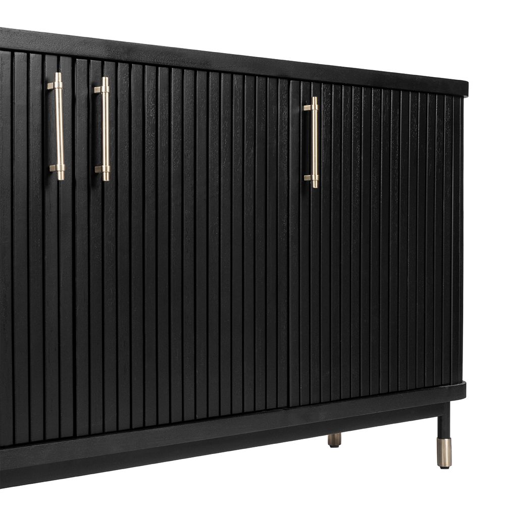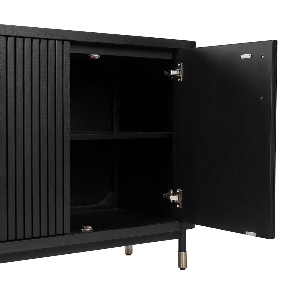 The Sophia Buffet Black delivers a sophisticated storage solution with contemporary appeal. Featuring sleek fluted door fronts, elegant brass-finished handles, and ample internal shelving, it combines modern design with everyday practicality. Resting on slim legs with brass-capped feet, its streamlined profile brings an elevated sense of style without overwhelming a space. Perfect for dining rooms, entryways, or living areas, this versatile buffet enhances interiors with architectural detail and timeless character. Also available in White and Oak Natural finishes.