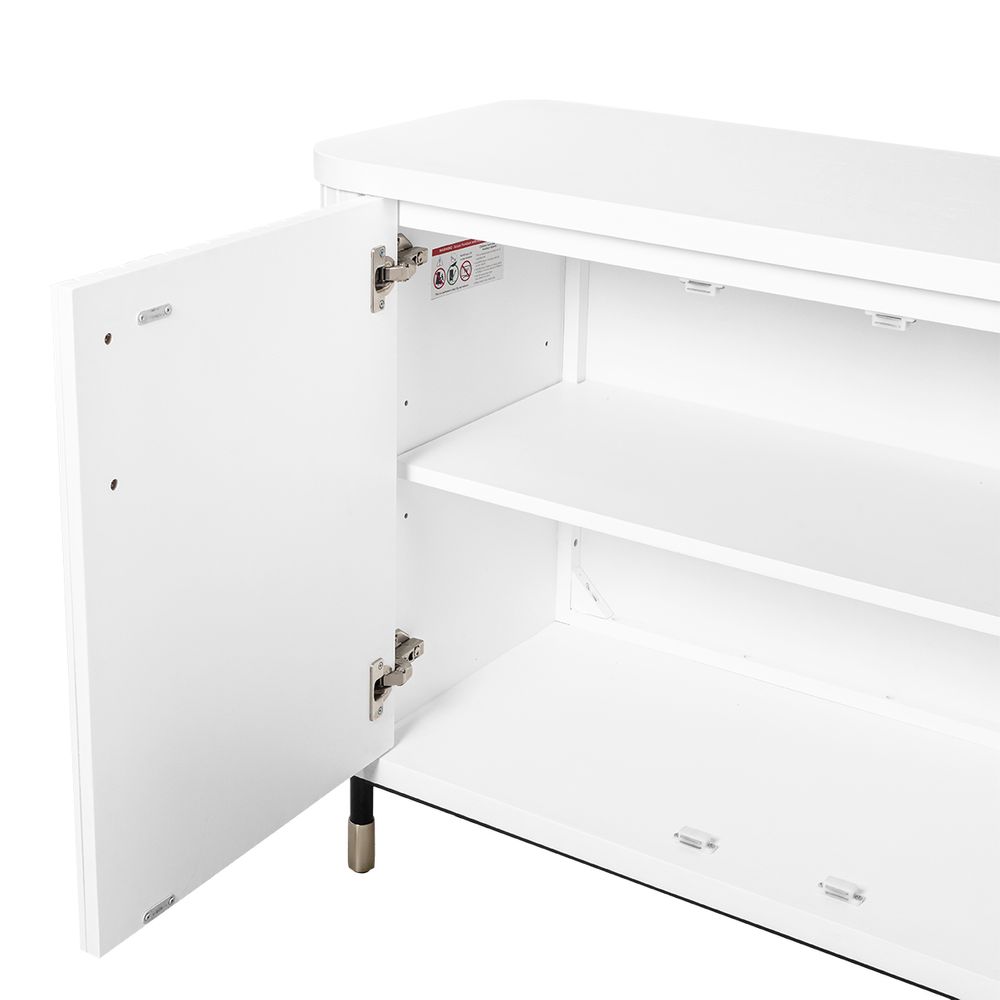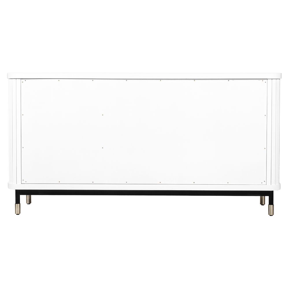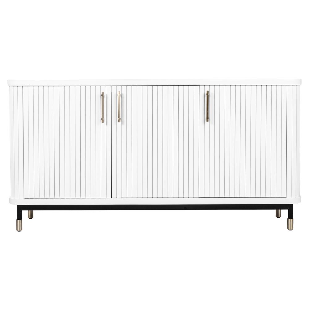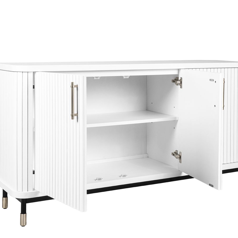 Bring timeless sophistication to your interiors with the Sophia Buffet in crisp white. Part of the contemporary Sophia Range, this versatile buffet features fluted door fronts, slimline brass handles, and ample internal shelving for seamless storage. Elevated on slender legs with brass-capped feet, its streamlined profile adds elegance without overpowering a space. Perfect for dining rooms, living areas, or entryways, this buffet blends style with function. Also available in Black and Oak Natural to suit modern, coastal, or transitional interiors.