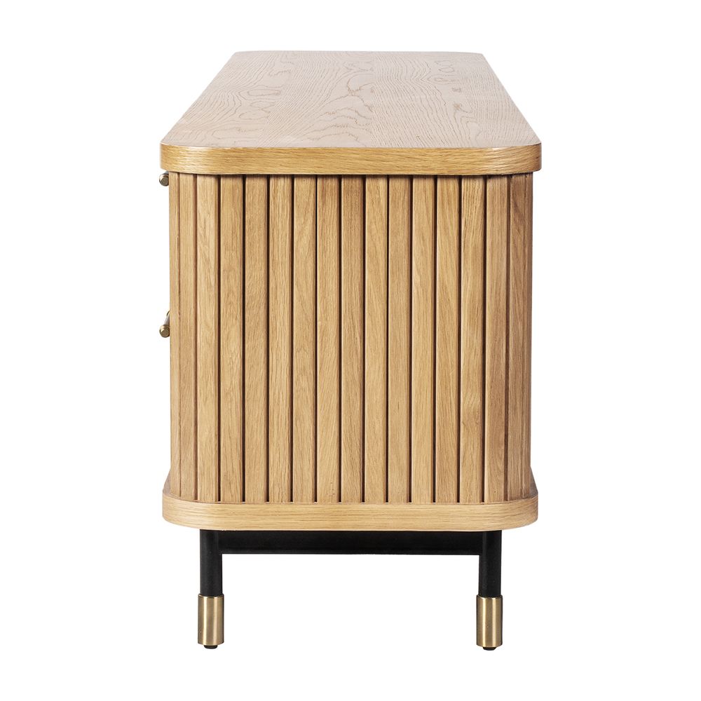 The Sophia Entertainment Unit combines functional design with modern refinement, making it an ideal centrepiece for contemporary living spaces. Featuring elegant fluted drawer fronts, slim brass handles and brass capped legs, it introduces architectural sophistication to any interior. Four spacious drawers and two open shelves provide generous storage for media accessories, while a rear cable hole with matching grommet ensures a neat, organised setup. Available in versatile colourways including White, Black and Oak Natural, it blends style with everyday practicality.