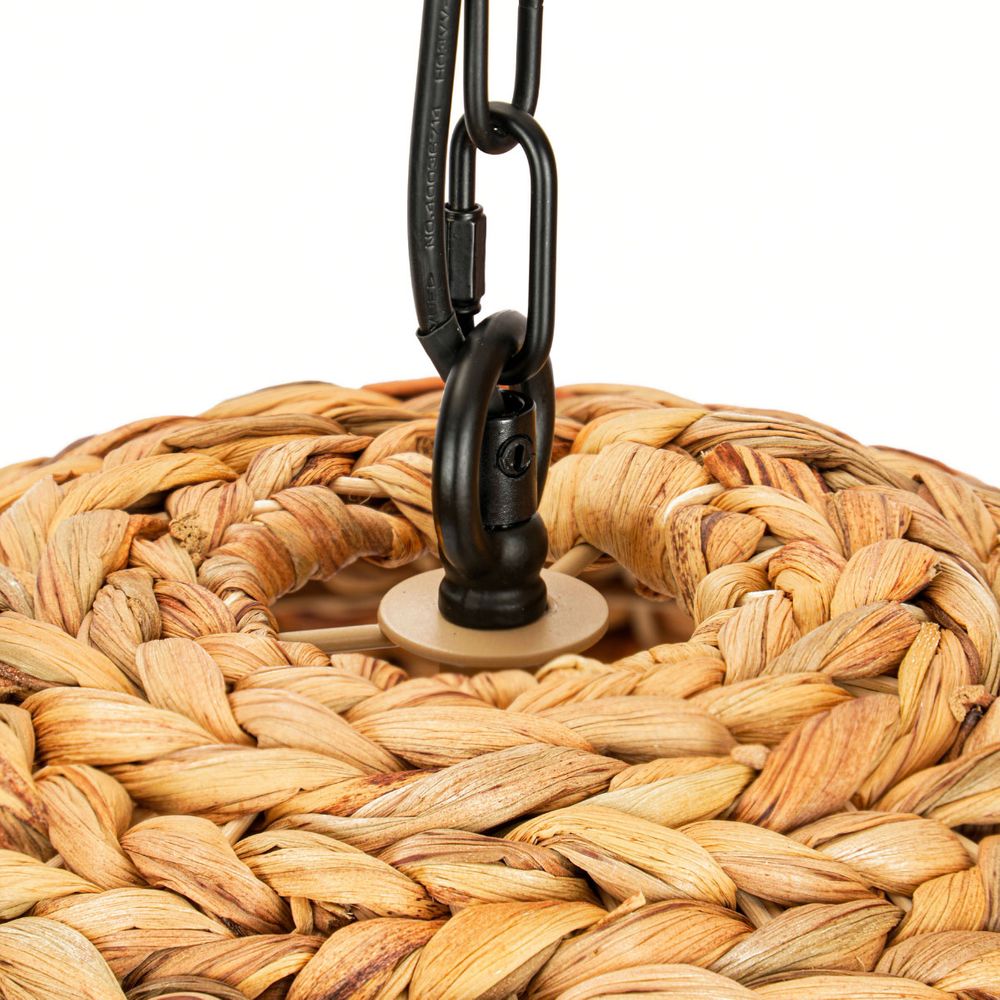The Teresina Pendant is a statement lighting piece that blends artisanal texture with contemporary form. Available in medium and large sizes, it features a handwoven water hyacinth shade paired with a matte black iron frame and chain. Its natural dome silhouette adds warmth and visual interest to dining or living spaces. Fitted with three E27 lamp holders and compatible with smart globes, it’s partially assembled for easy installation and lasting impact.