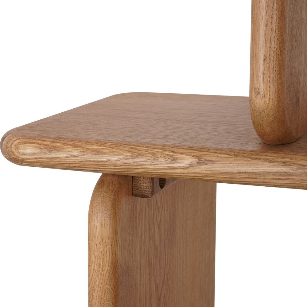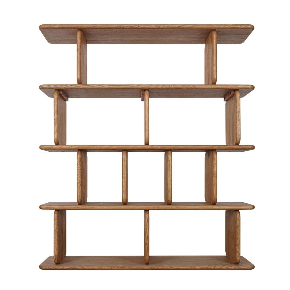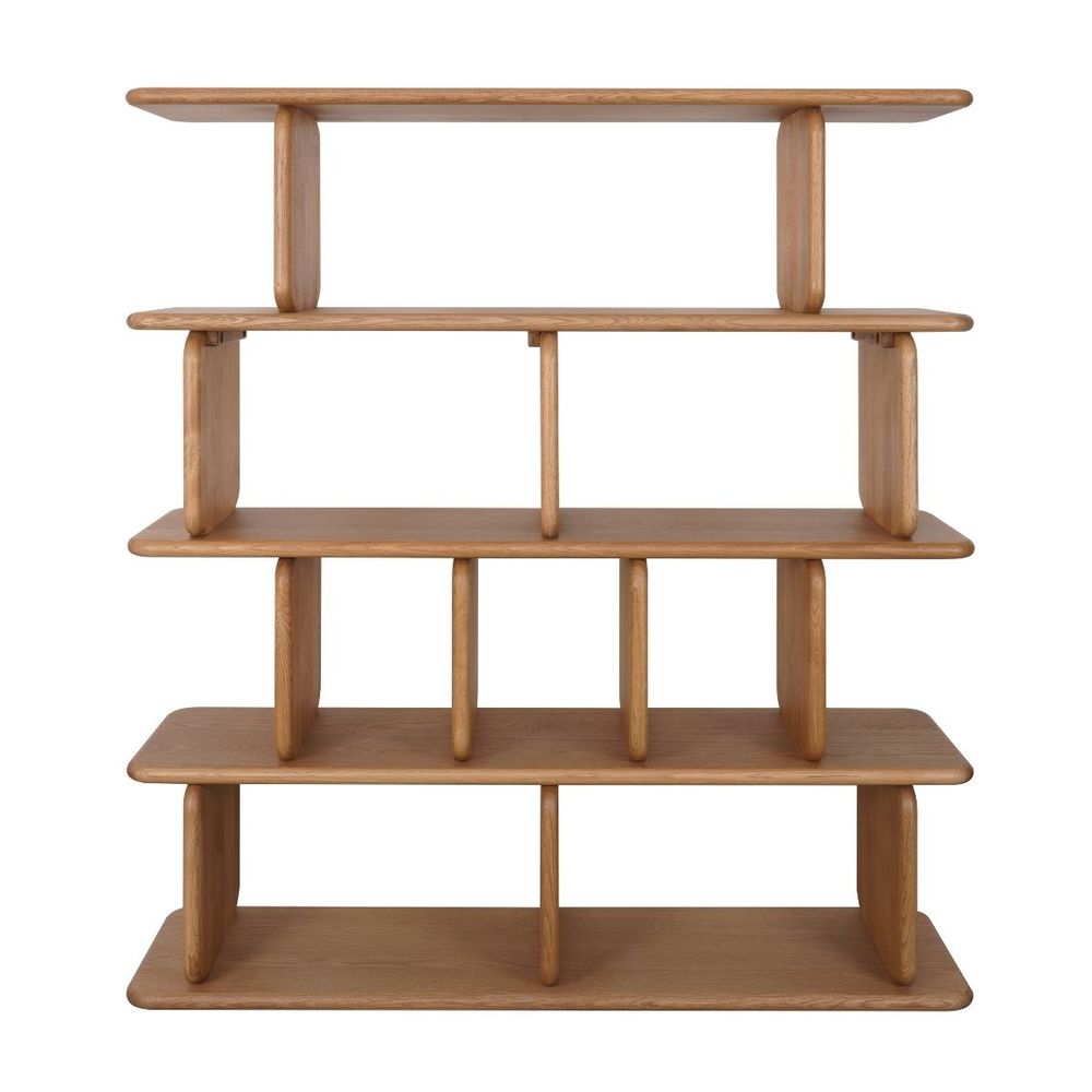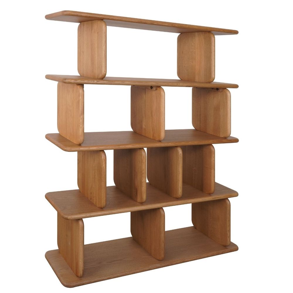 The Tudor 4 Tier Shelving Unit in natural oak is a striking storage statement, defined by its rhythmic structure and generous open shelving. Crafted with softly curved vertical supports, this piece balances strength and elegance. Ideal for larger spaces, it offers ample room for styling while maintaining a refined, airy presence.