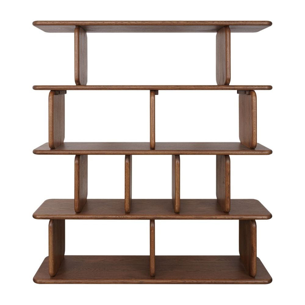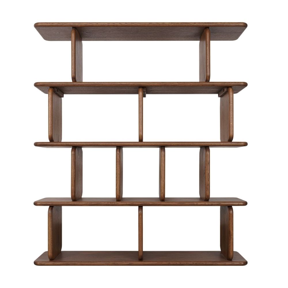 Bold and architectural, the Tudor 4 Tier Shelving Unit in walnut brings warmth and visual impact to interiors. The darker timber finish enhances the sculptural form, while multiple tiers provide practical storage and display versatility. Designed for statement styling, this unit anchors a space with confidence and character.