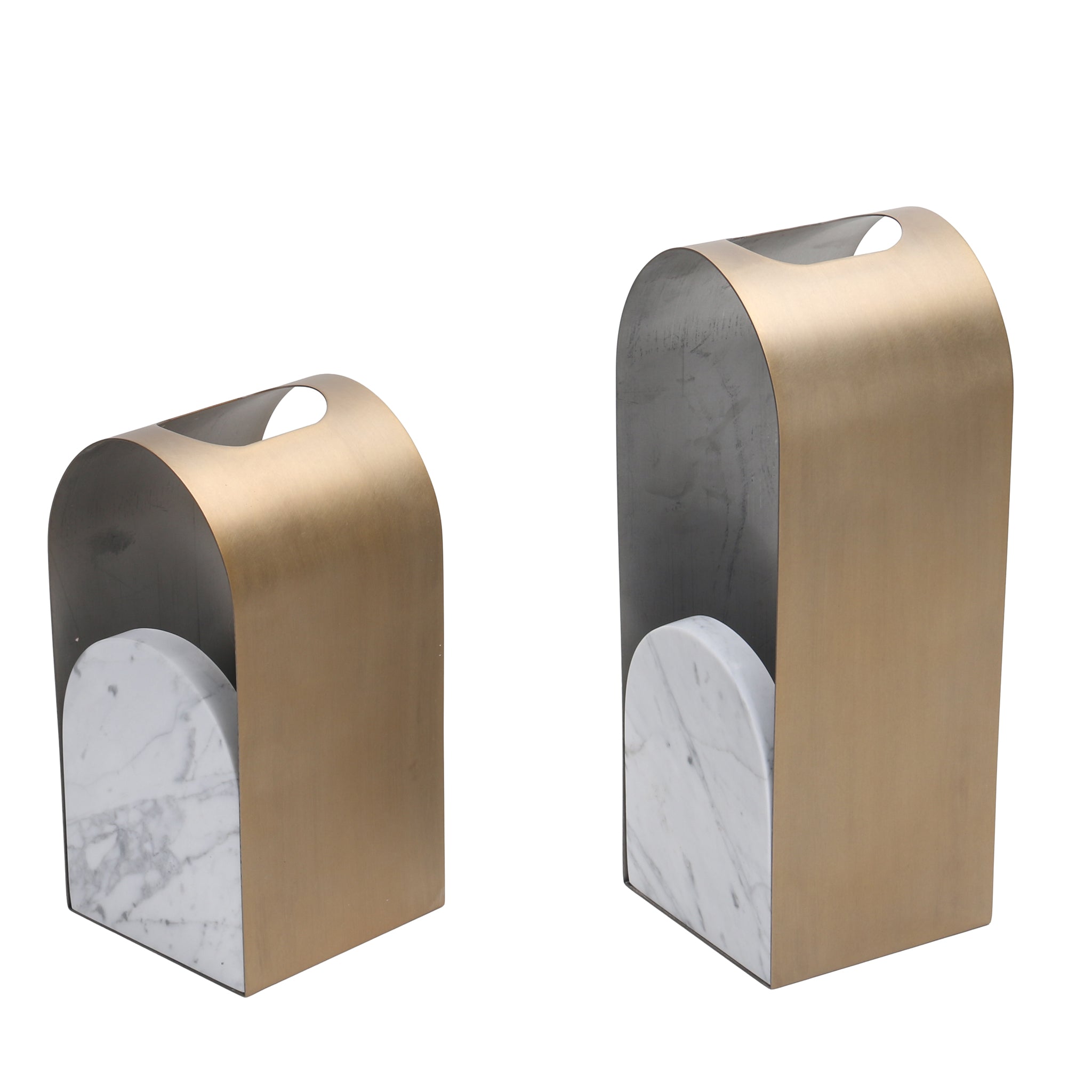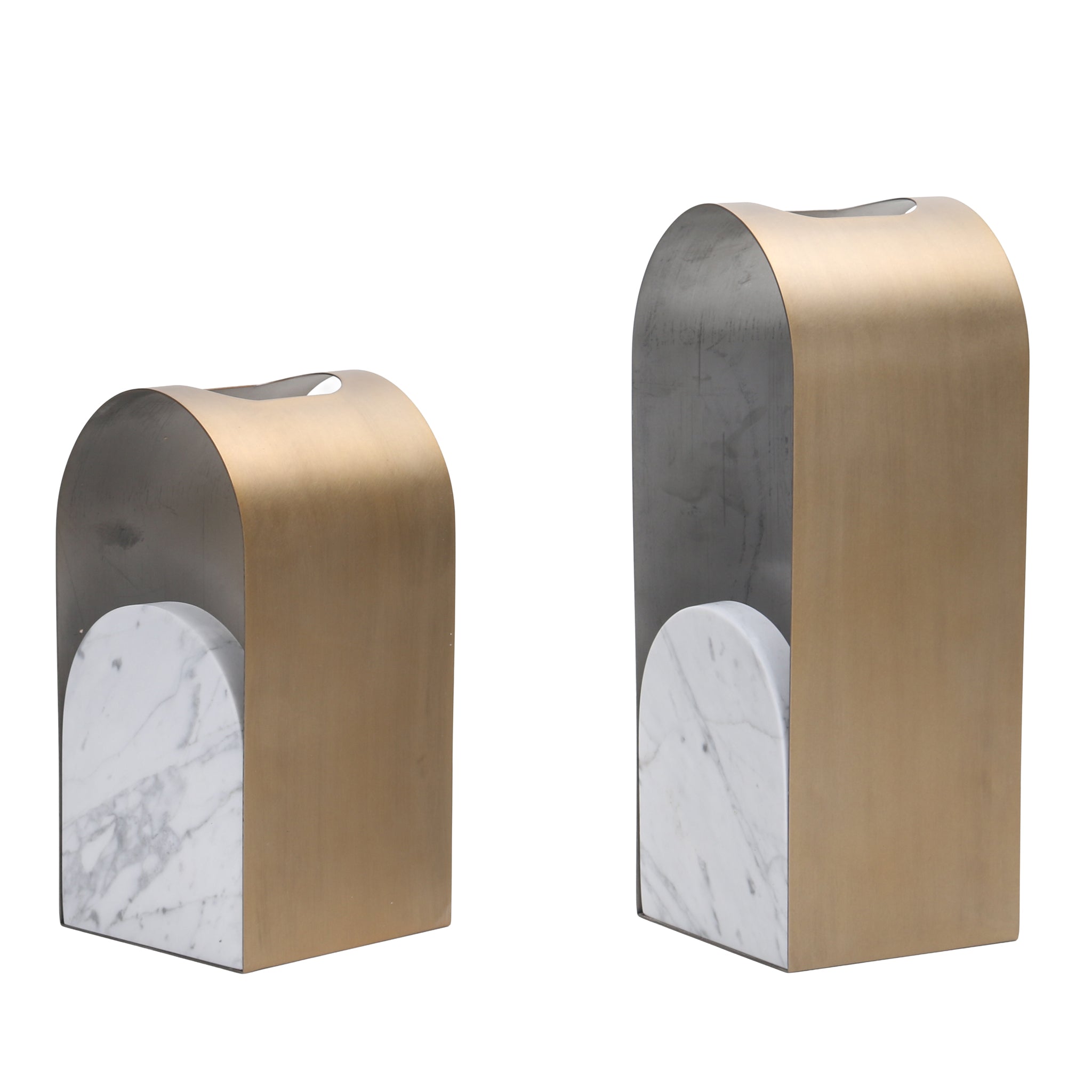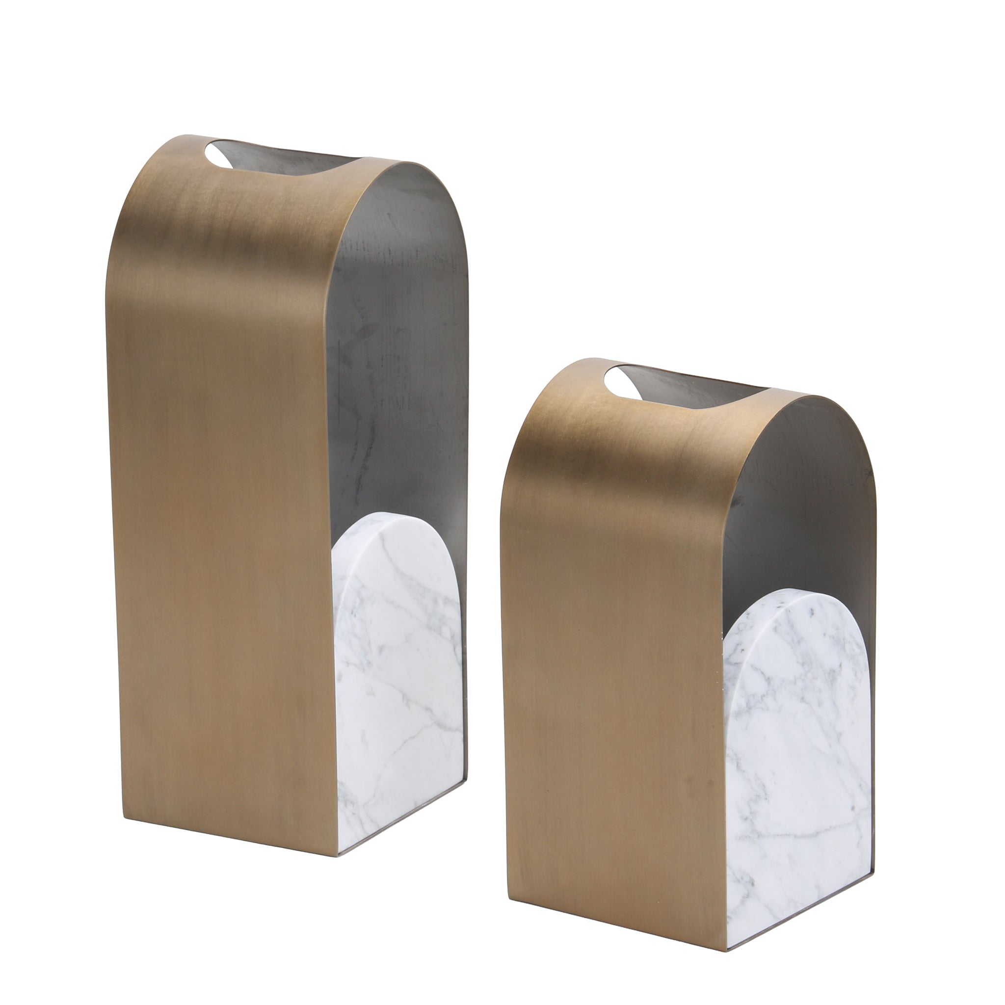 Brushed golden metal finish Carrara white marble front panel with natural veining Tall arched silhouette with softly curved top Slim opening ideal for single stems or arrangements Elegant contrast of warm gold and cool marble Sculptural statement for mantels, consoles, or tables Weighted and stable design Product comes fully assembled Note: Our marble and travertine decor pieces are natural stone that each has its own unique imperfections and characteristics. Any variations in colour, texture, polish, and pattern are not a fault and should be appreciated. Please note that polished marble and travertine are porous, so contact with liquids or hot beverages may cause the marble to mark. Make sure to wipe away any contact with food or drink immediately using water or a mild cleaner.