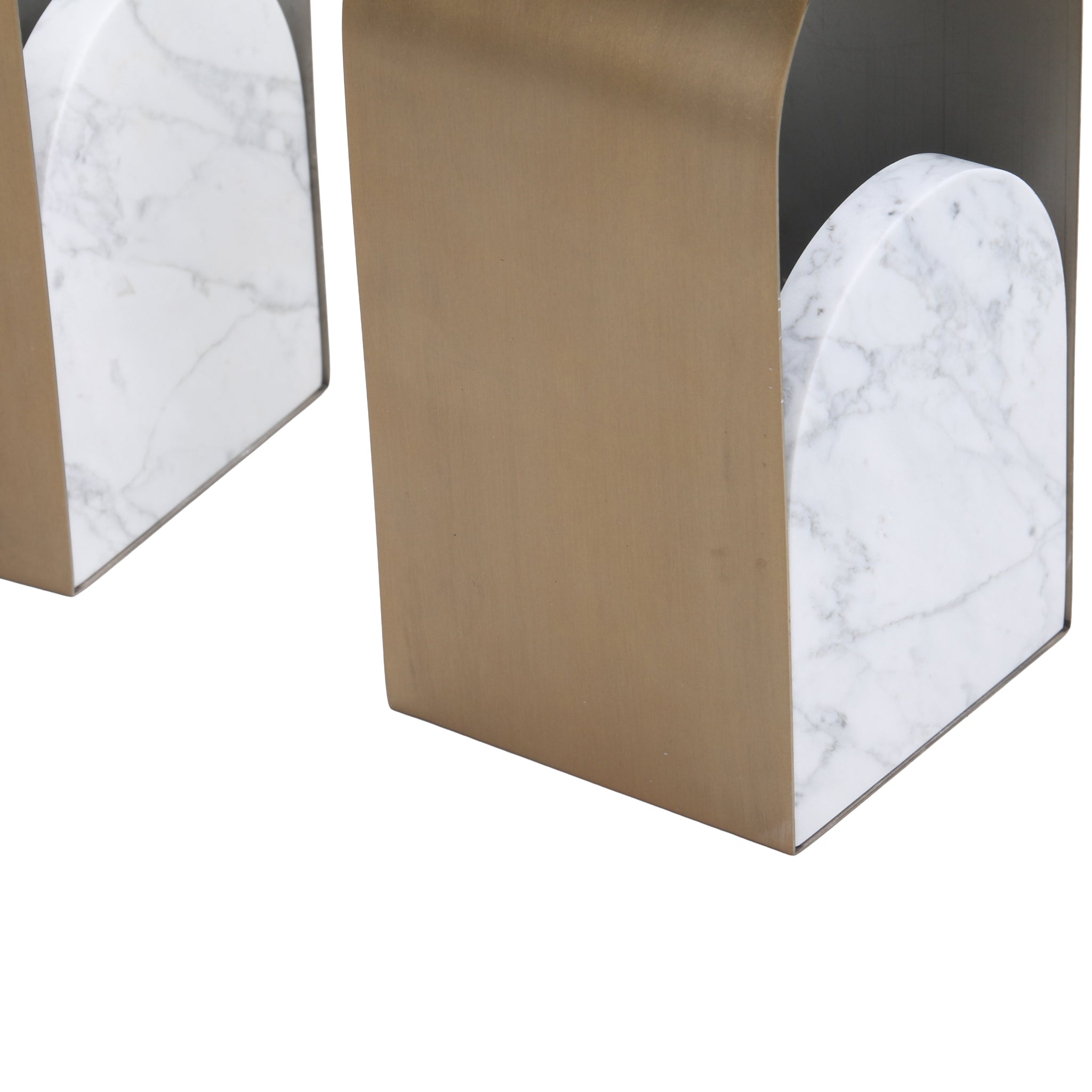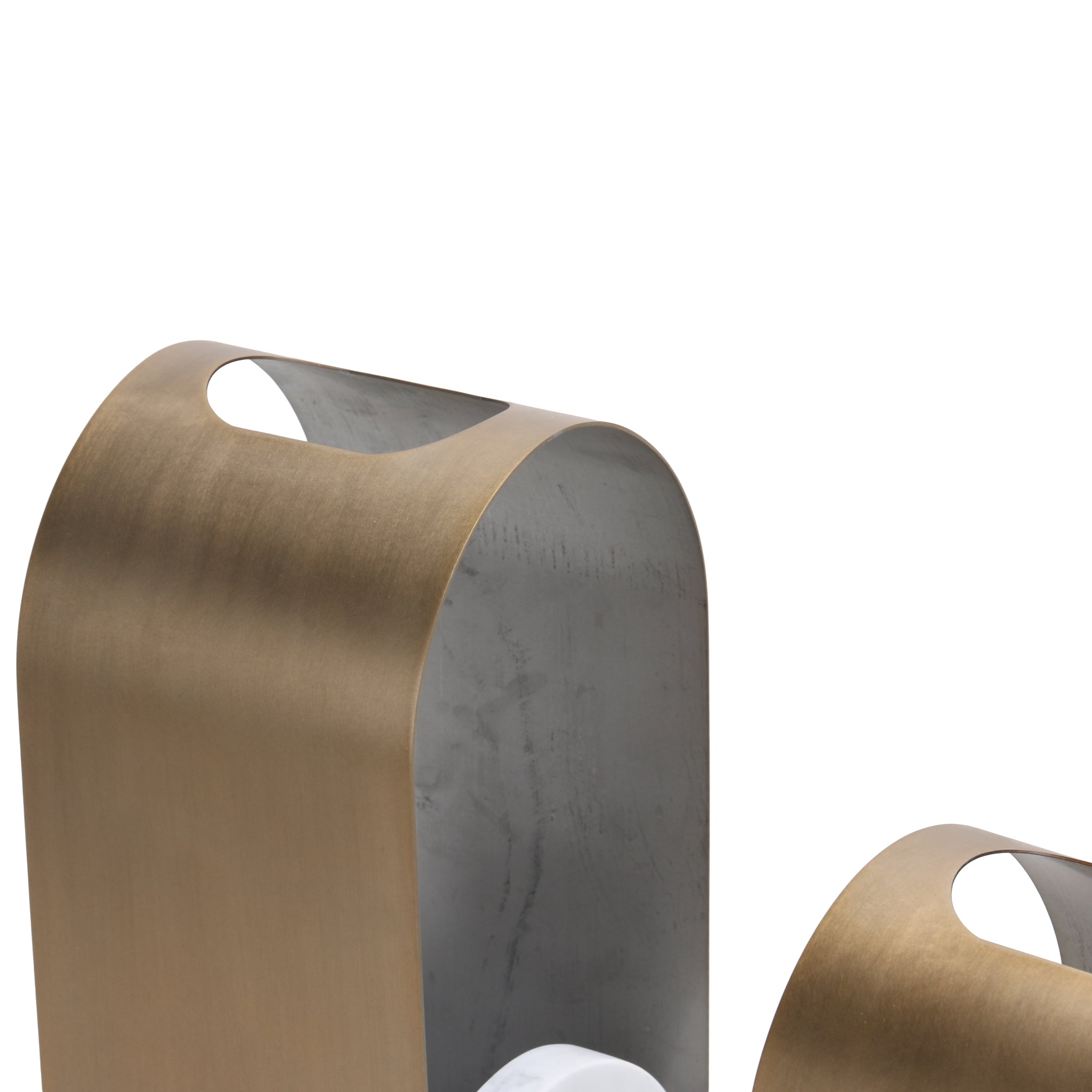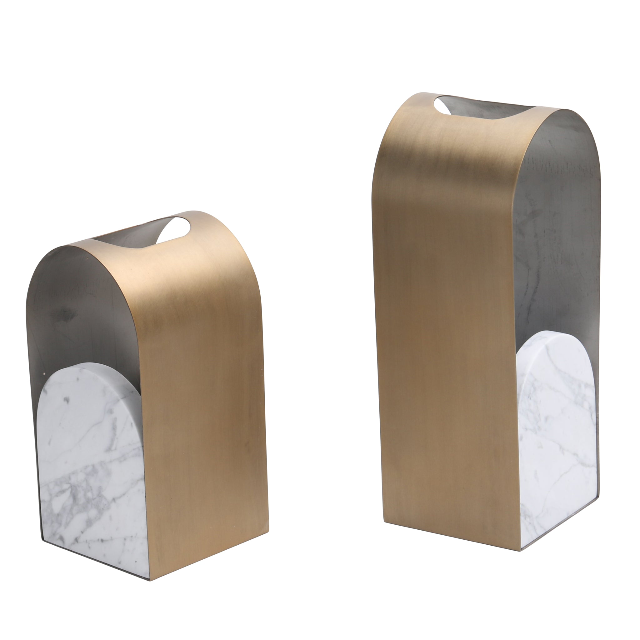 Brushed golden metal finish Carrara white marble front panel with natural veining Tall arched silhouette with softly curved top Slim opening ideal for single stems or arrangements Elegant contrast of warm gold and cool marble Sculptural statement for mantels, consoles, or tables Weighted and stable design Product comes fully assembled Note: Our marble and travertine decor pieces are natural stone that each has its own unique imperfections and characteristics. Any variations in colour, texture, polish, and pattern are not a fault and should be appreciated. Please note that polished marble and travertine are porous, so contact with liquids or hot beverages may cause the marble to mark. Make sure to wipe away any contact with food or drink immediately using water or a mild cleaner.