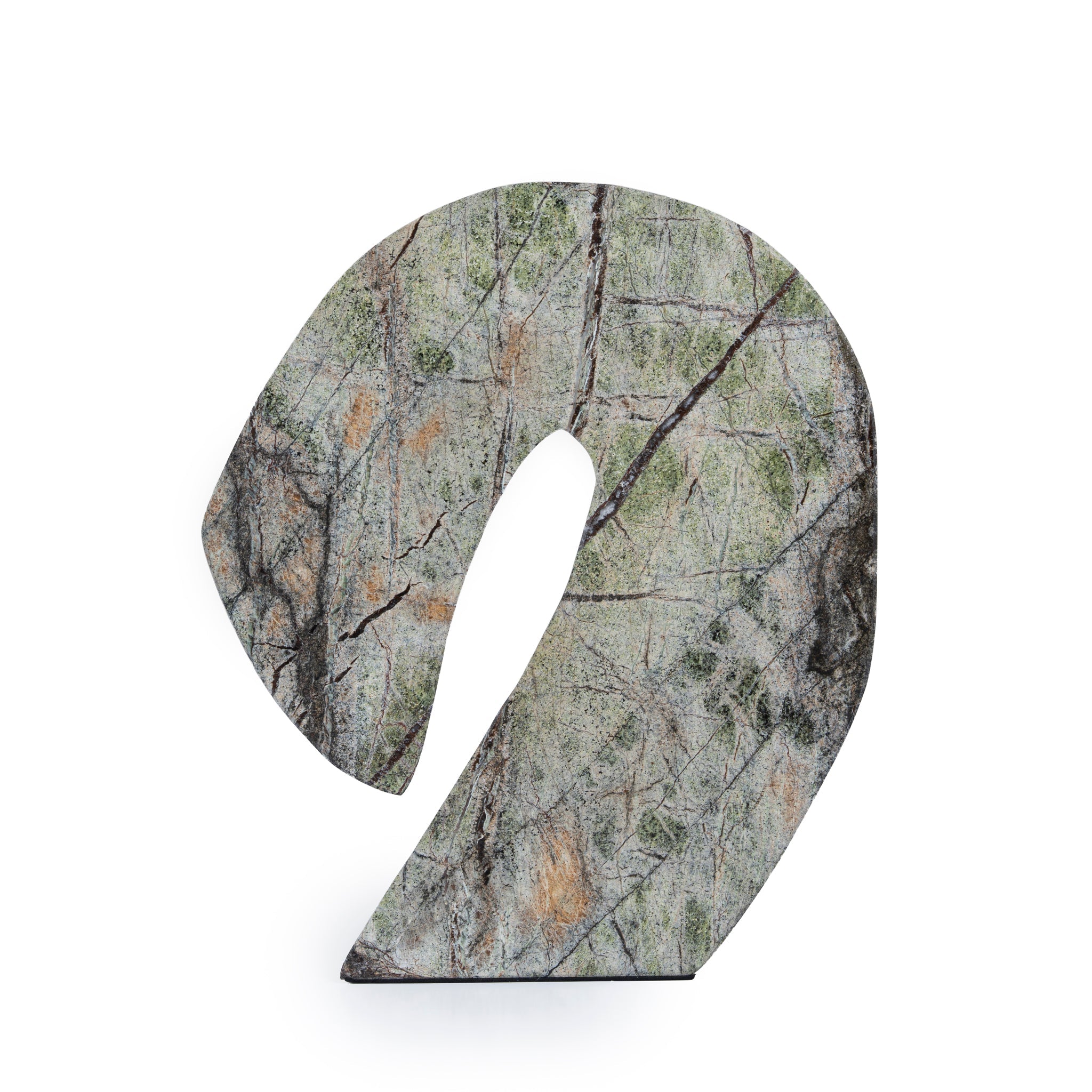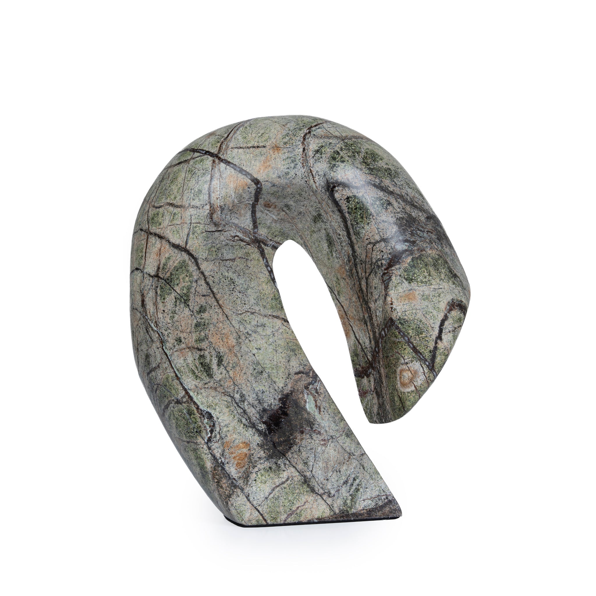 Deep-green marble with natural white veining Abstract wave-inspired silhouette with smooth flowing curves Central cut-out detail Polished surface highlights rich color and organic patterns Weighty, stable design for secure placement Striking as a standalone focal point or display accent Product comes fully assembled Note: Our marble and travertine decor pieces are natural stone that each has its own unique imperfections and characteristics. Any variations in colour, texture, polish, and pattern are not a fault and should be appreciated. Please note that polished marble and travertine are porous, so contact with liquids or hot beverages may cause the marble to mark. Make sure to wipe away any contact with food or drink immediately using water or a mild cleaner.