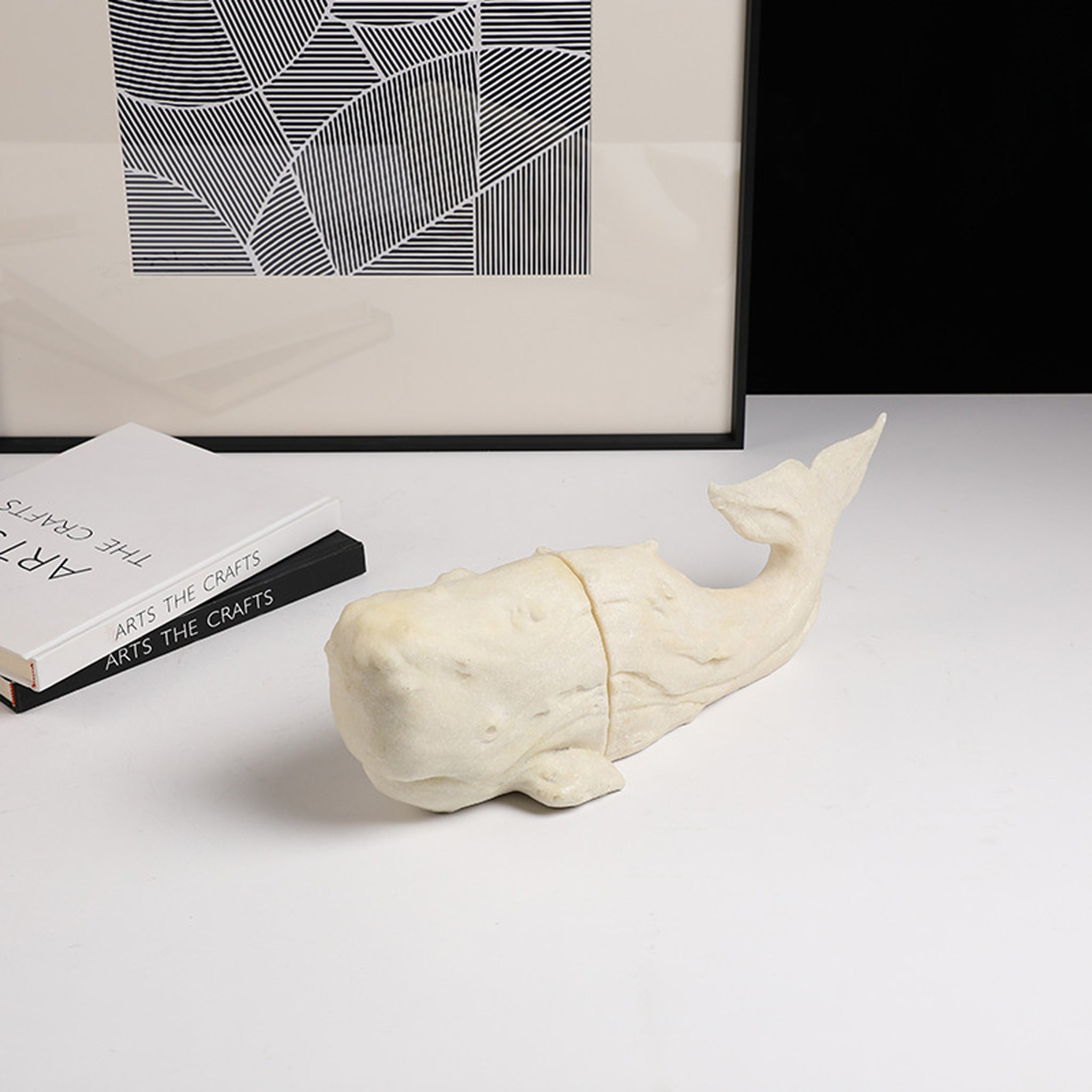 Premium resin with a smooth matte finish Sculpted whale design Intricate detailing captures curves and texture of a whale Crisp white tone Functional yet decorative Solid weight ensures stability and secure book support Product comes fully assembled