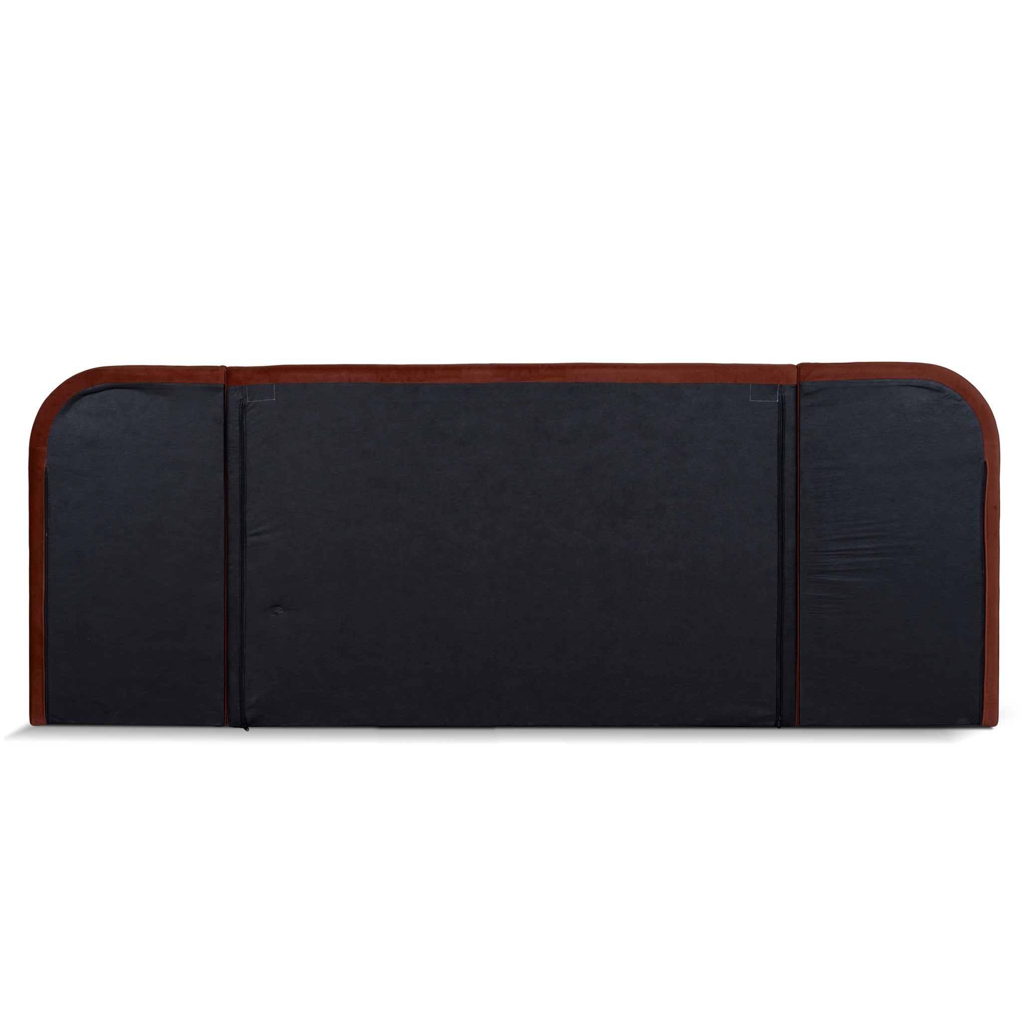 Umber orange fabric upholstery Engineered wood construction Padded surface Sturdy framework Includes hardware for secure wall mounting Minimalist design Rounded corners Versatile style Minor Assembly Required