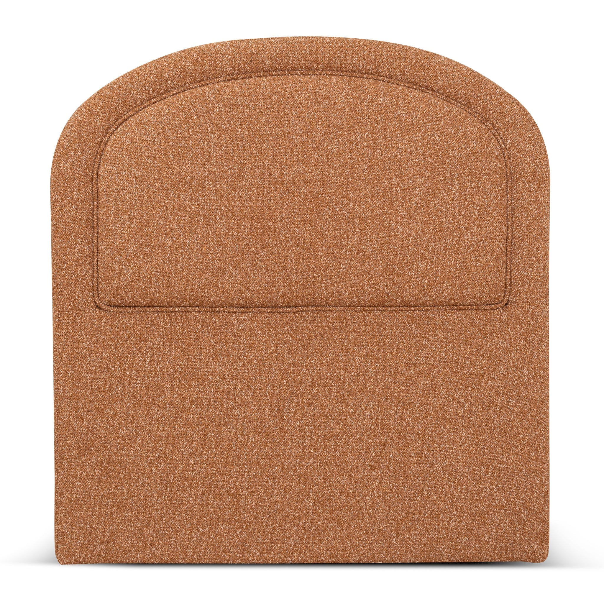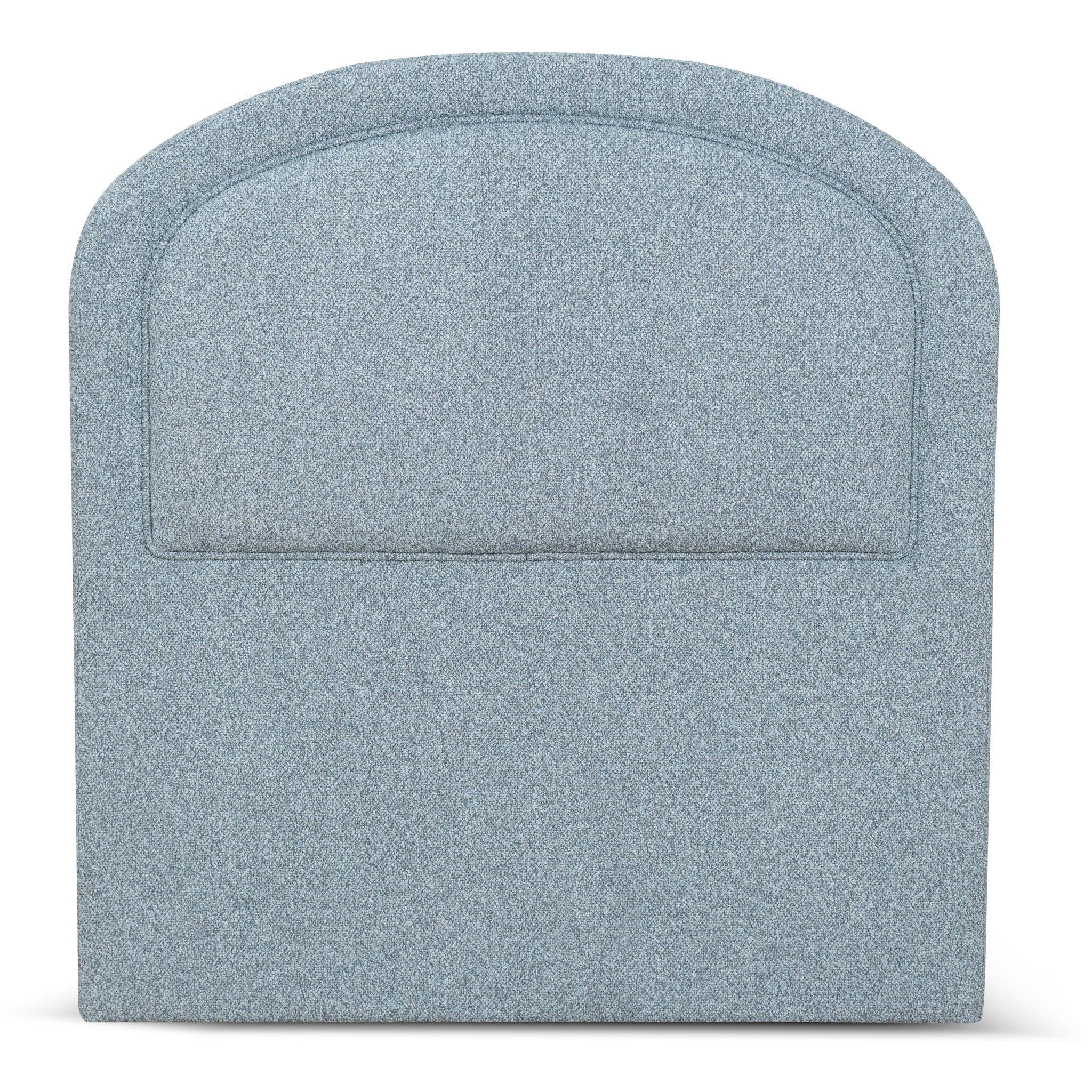 Clay grey polyester linen upholstery Engineered wood frame Foam filling Sculptural arch design Padded inner panel Floor-standing structure Black fabric backing for a clean finish Designed to fit a standard single bed frame Minor Assembly Required