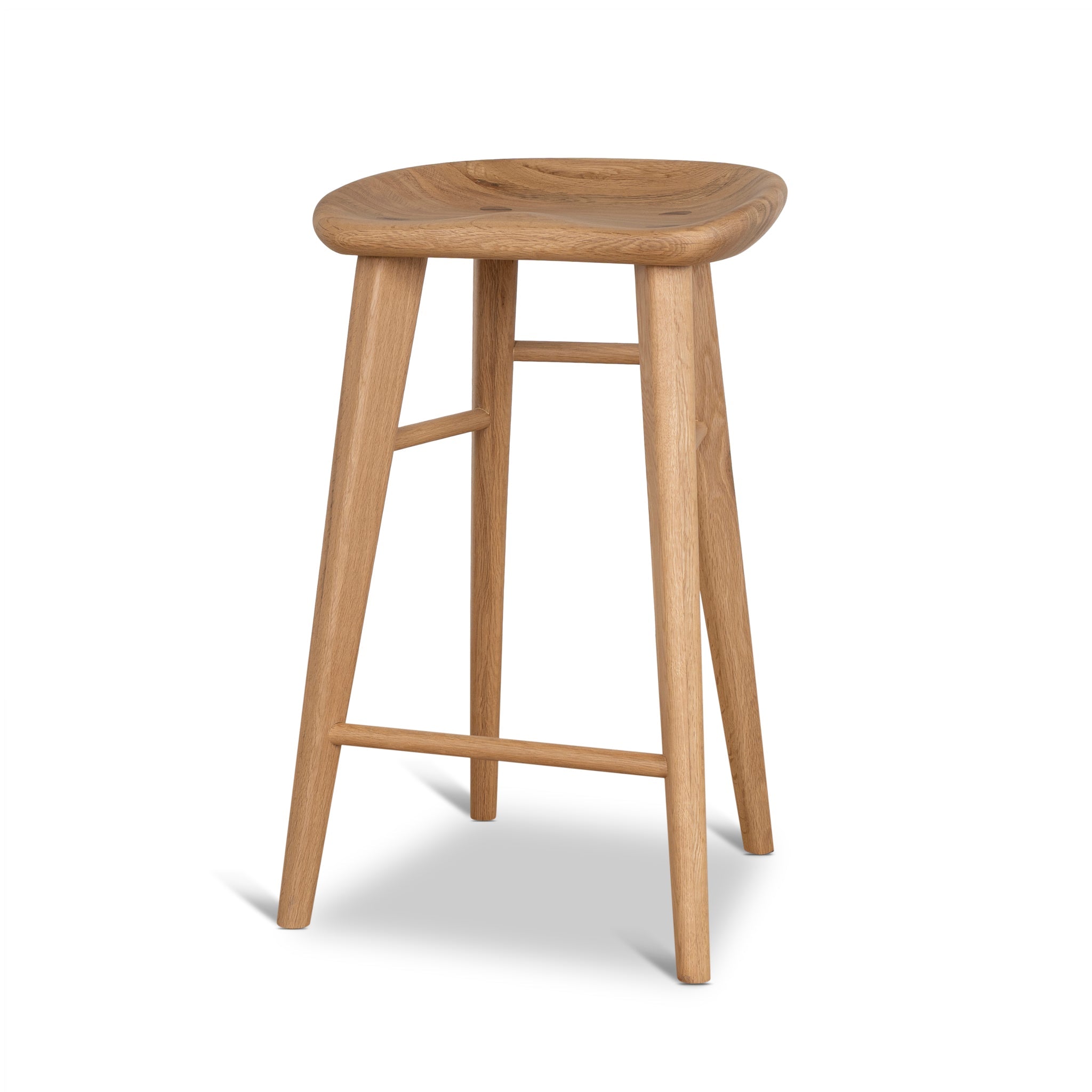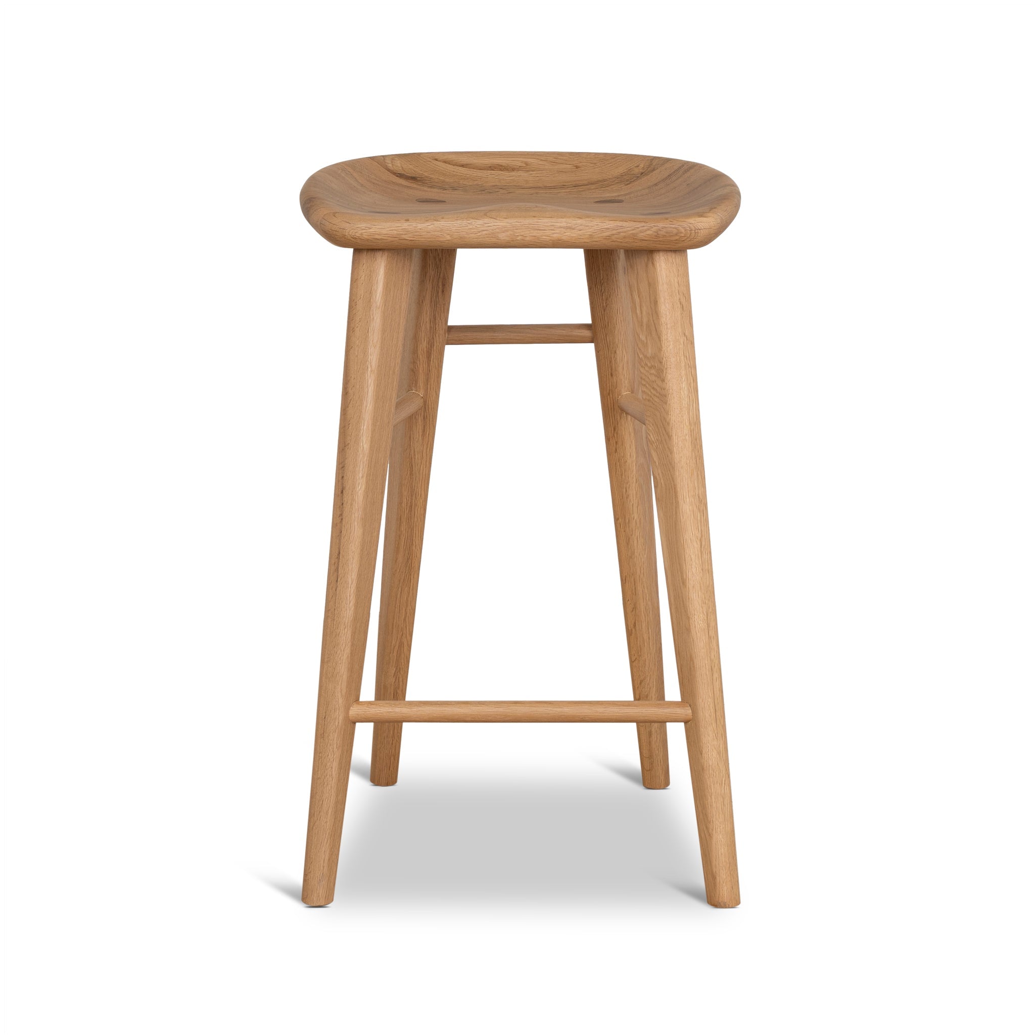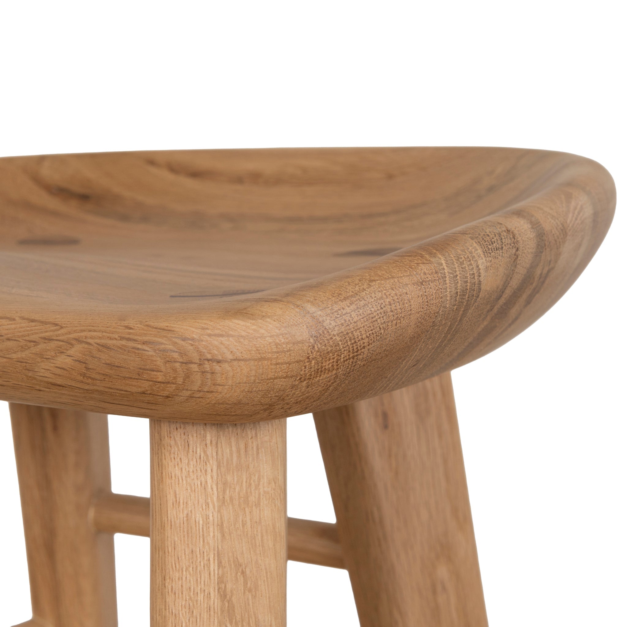 American white oak frame and legs Natural finish with wood grain patterns Smoothly sculpted, contoured seat Backless design Gently rounded edges Footrest stretchers on all sides Sleek tapered legs Weight Capacity: 150 kg Product comes fully assembled