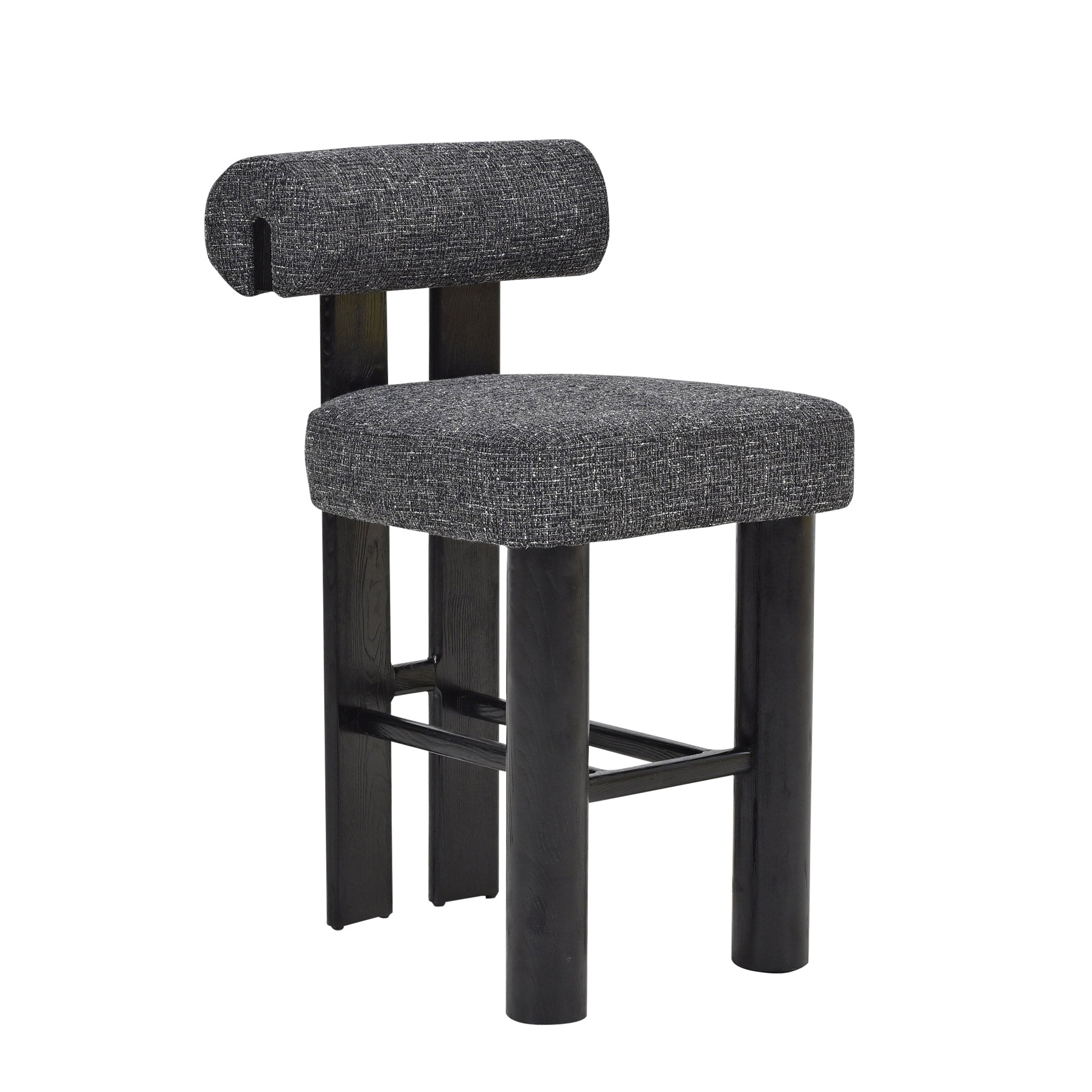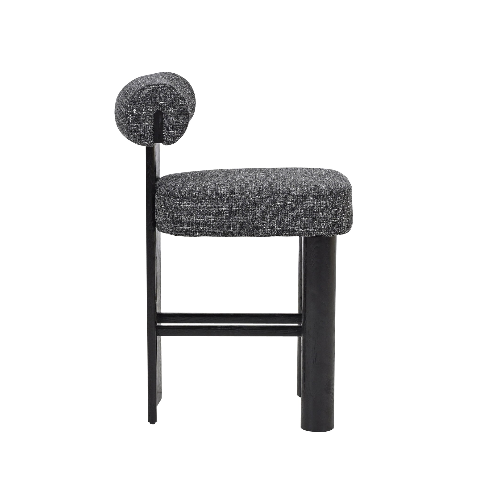 Field charcoal polyester upholstery Plywood frame Spring suspension Ash wood legs Foam filling Soft-to-medium seat firmness Clean, geometric silhouette with a playful modernist edge Horizontal and vertical stretcher bars Weight Capacity: 150 kg Product comes fully assembled
