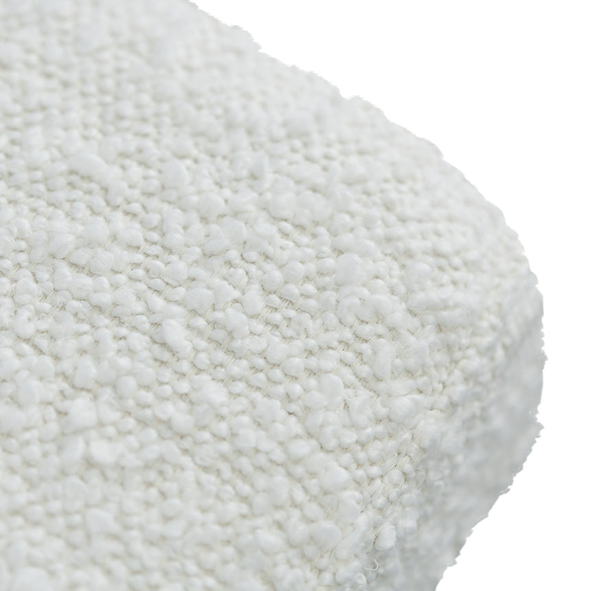 20% Acrylic, 80% Polyester fabric seat cushion Ivory white boucle upholstery Brushed gold stainless steel frame and base Non-slip floor protector on thin base leg Soft medium-firm foam filling Thin brushed gold footrest at the front Weight Capacity: 150 kg Product is fully assembled